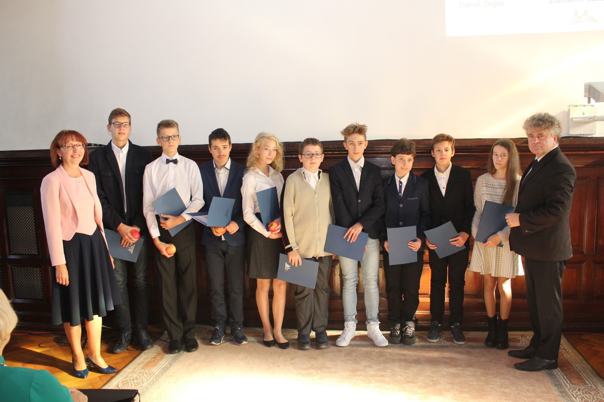 W kategorii Gimnazjum – nagrodę otrzymał absolwent Społecznego Gimnazjum Językowego, potrójny laureat olimpiad z fizyki, chemii i matematyki Artur Kamieniecki.