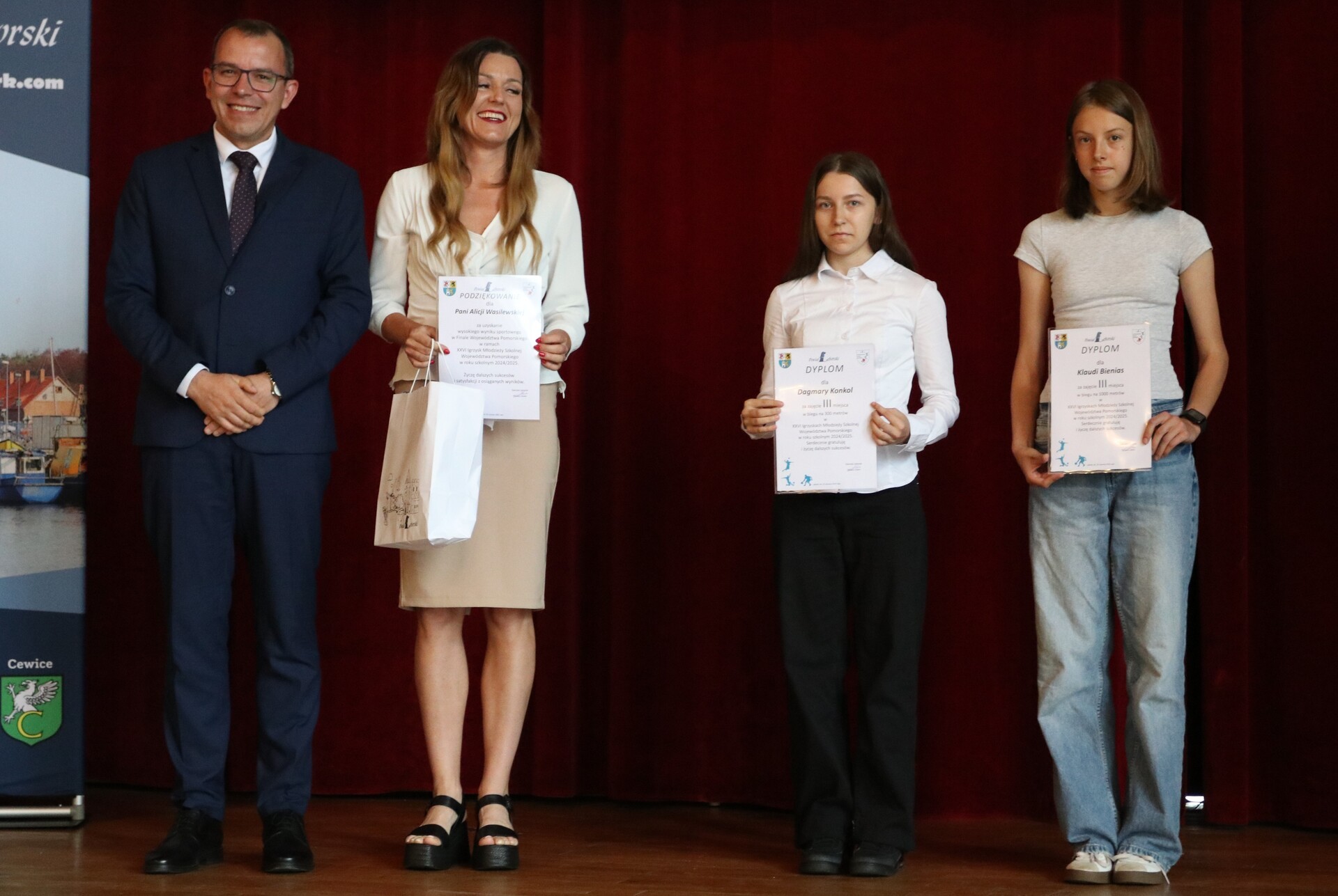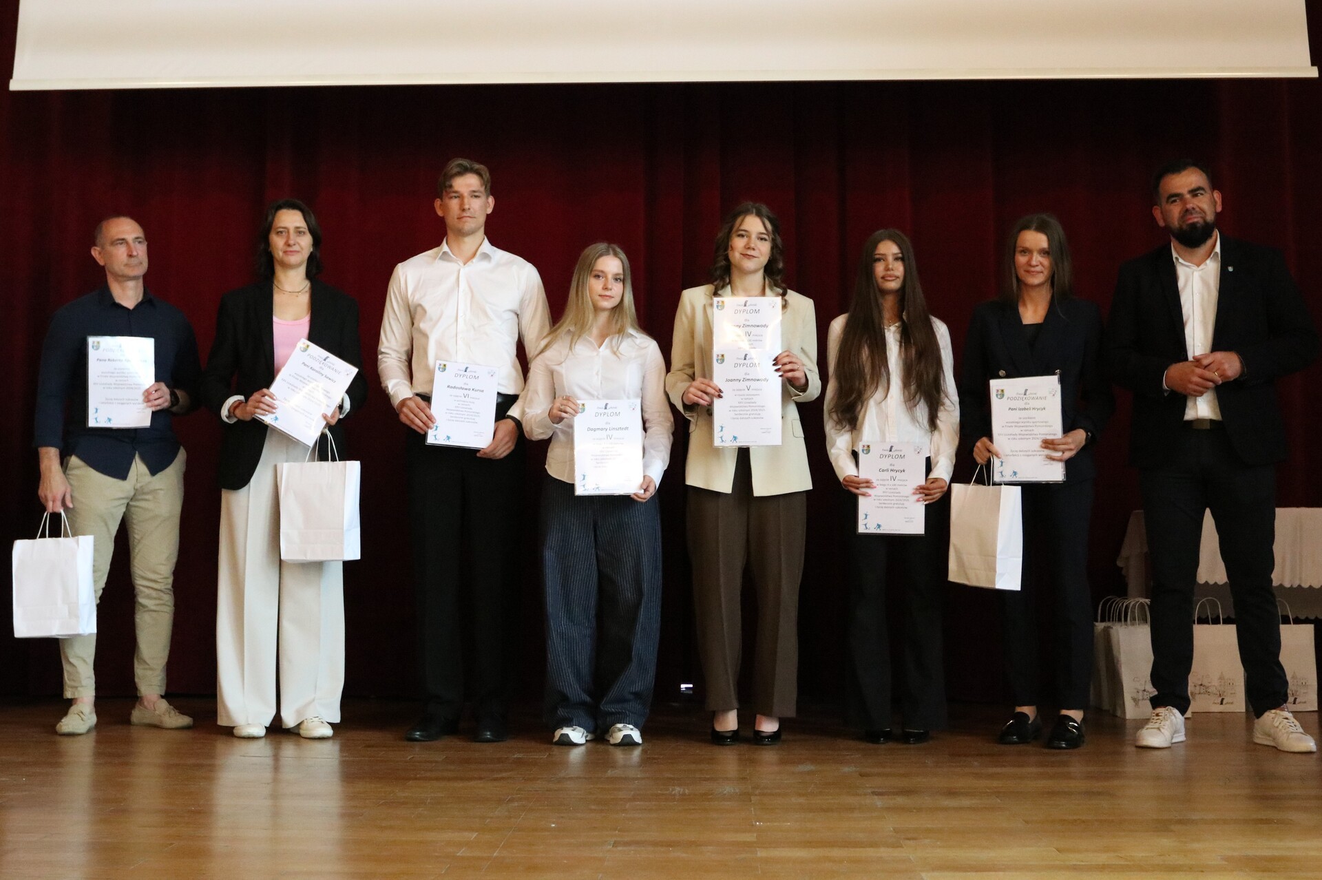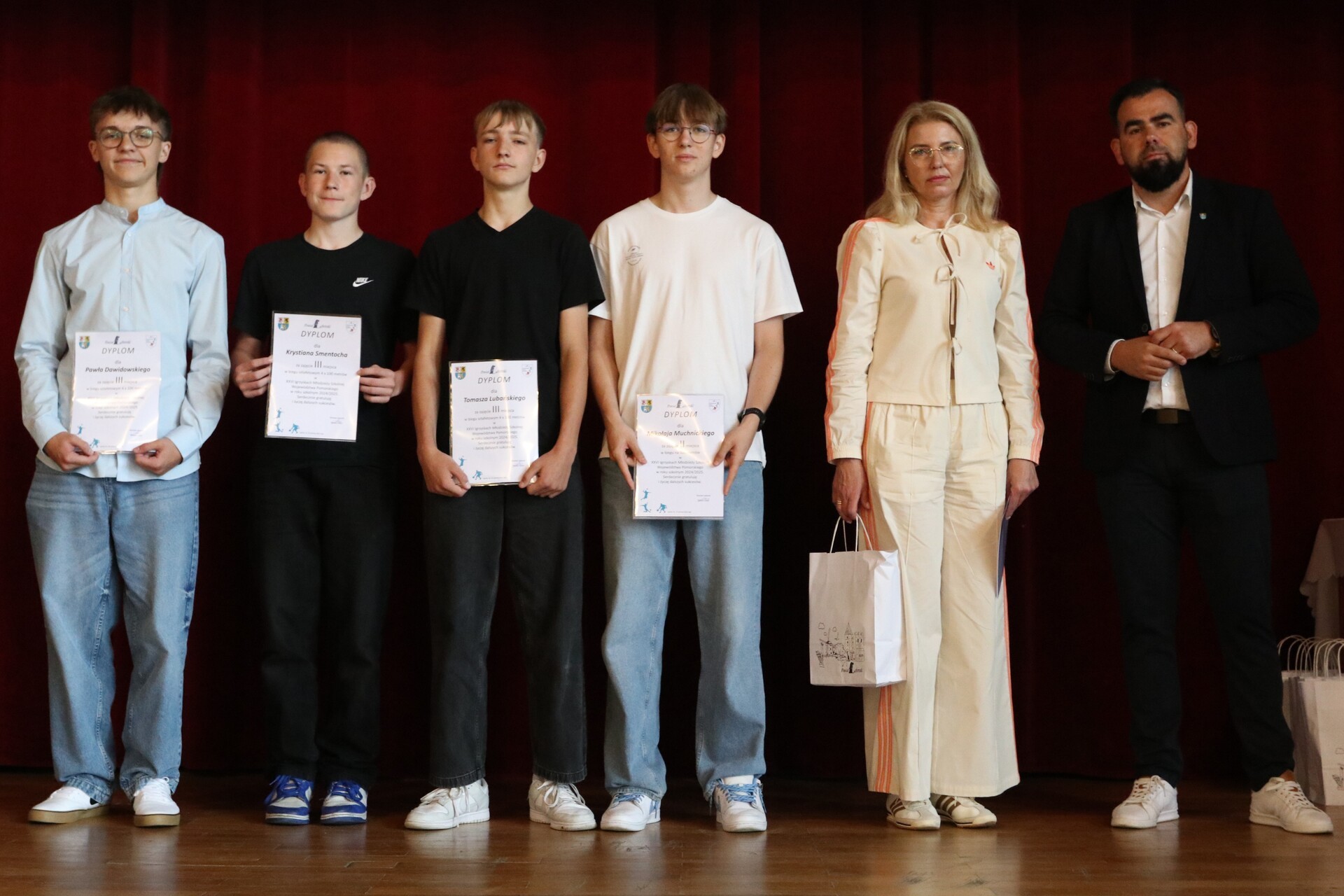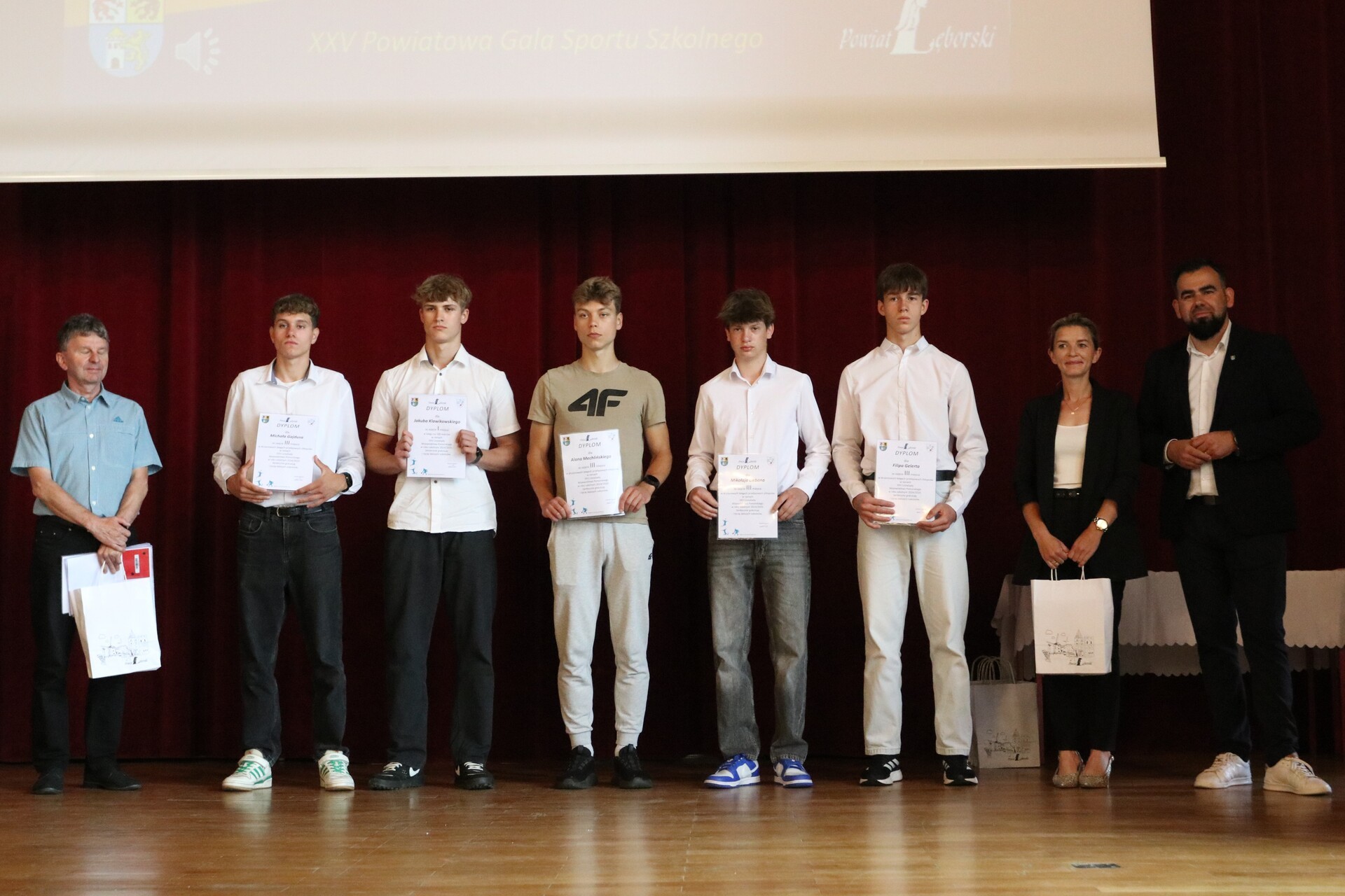 W auli Zespołu Szkół Mechaniczno – Informatycznych w Lęborku najlepsi sportowcy wśród uczniów odebrali nagrody za sukcesy w LIII Igrzyskach Dzieci, XXVI Igrzyskach Młodzieży Szkolnej, XXV Licealiadzie oraz Olimpiadach Specjalnych w roku szkolnym 2024/2025. Wśród gratulujących i wręczających nagrody był starosta lęborski Tomasz Litwin, burmistrz Miasta Lęborka Jarosław Litwin, zastępca wójta Gminy Nowa Wieś Lęborska Marian Kurzydło i sekretarz Gminy Cewice Joanna Parszewska.
