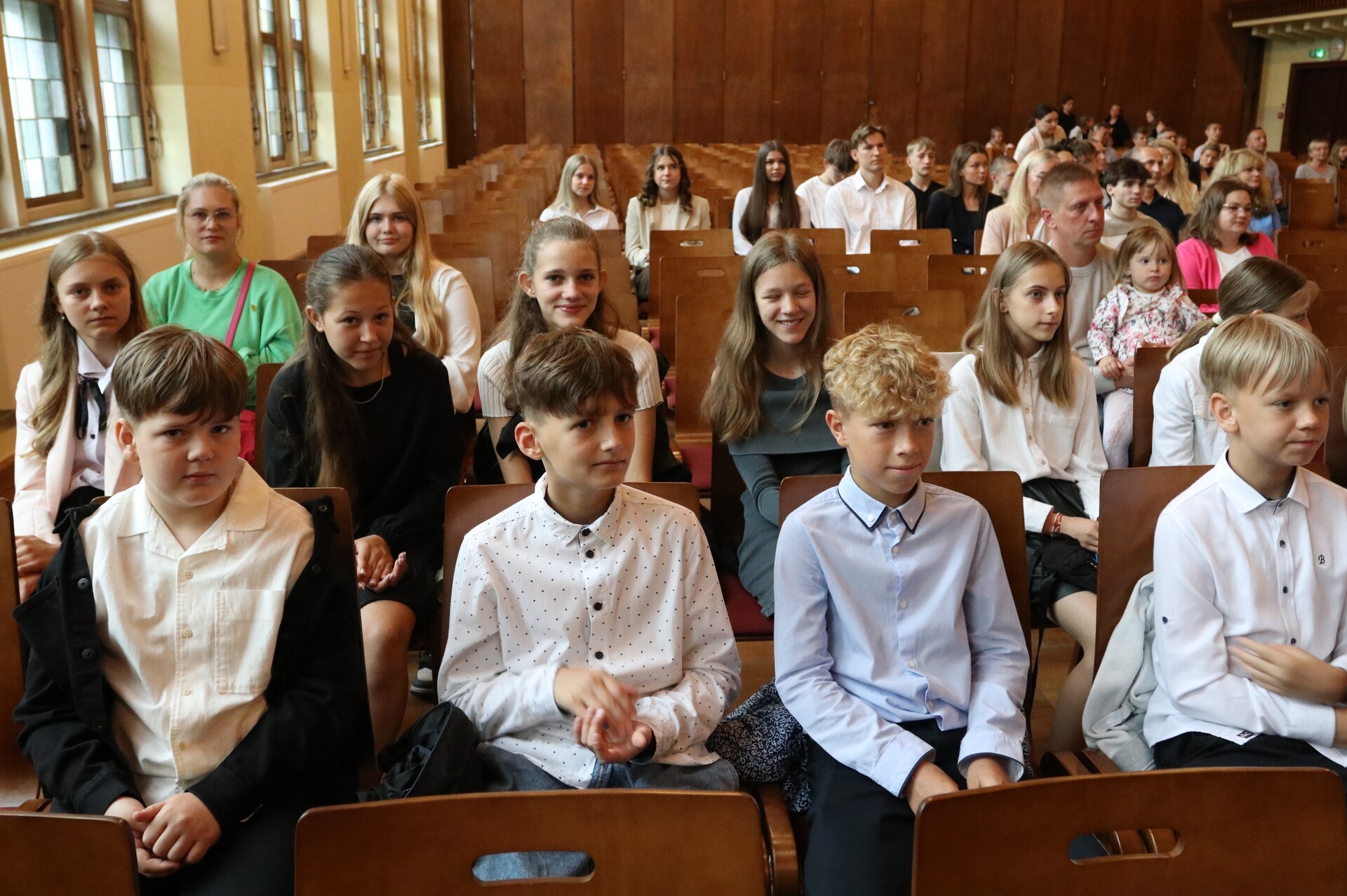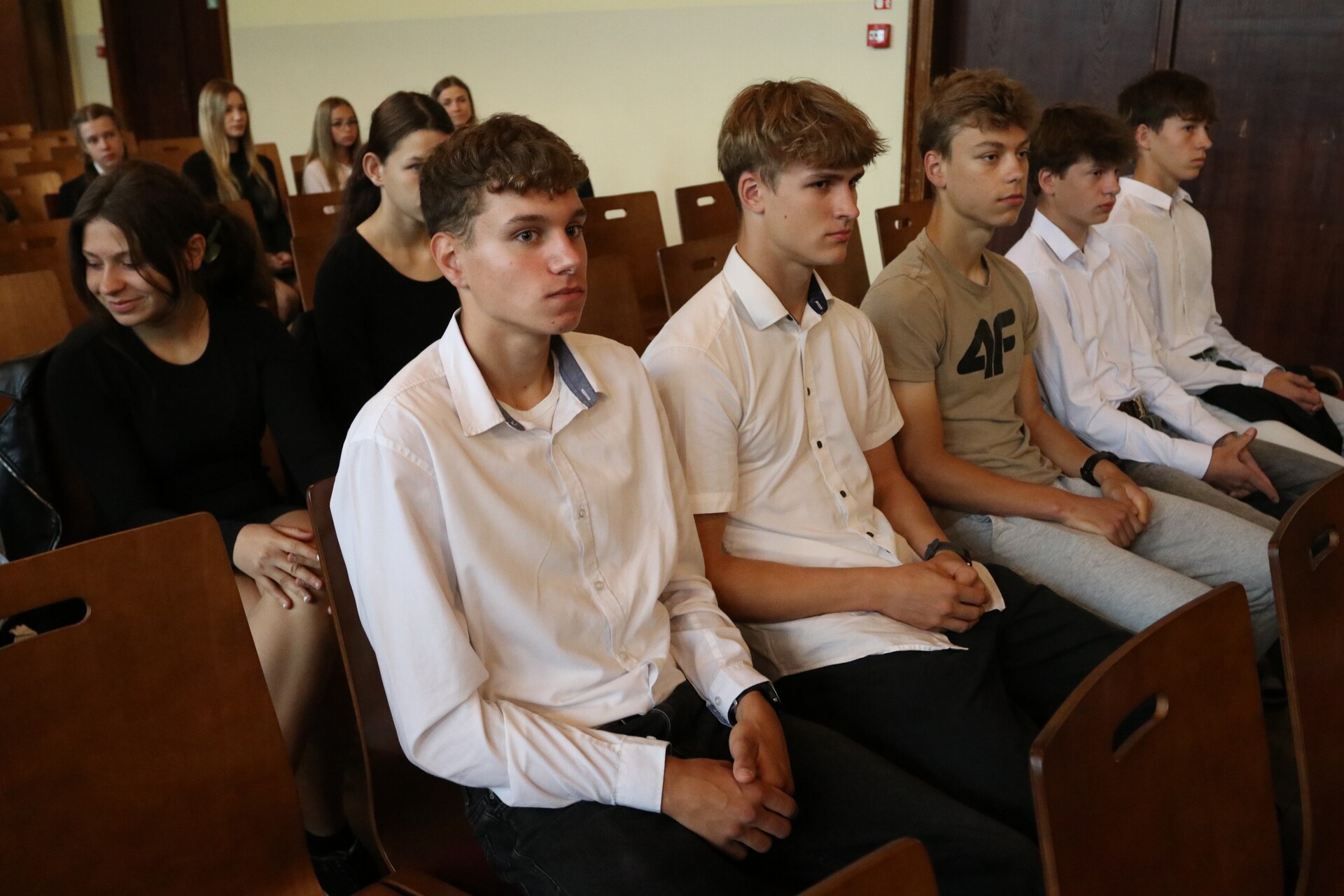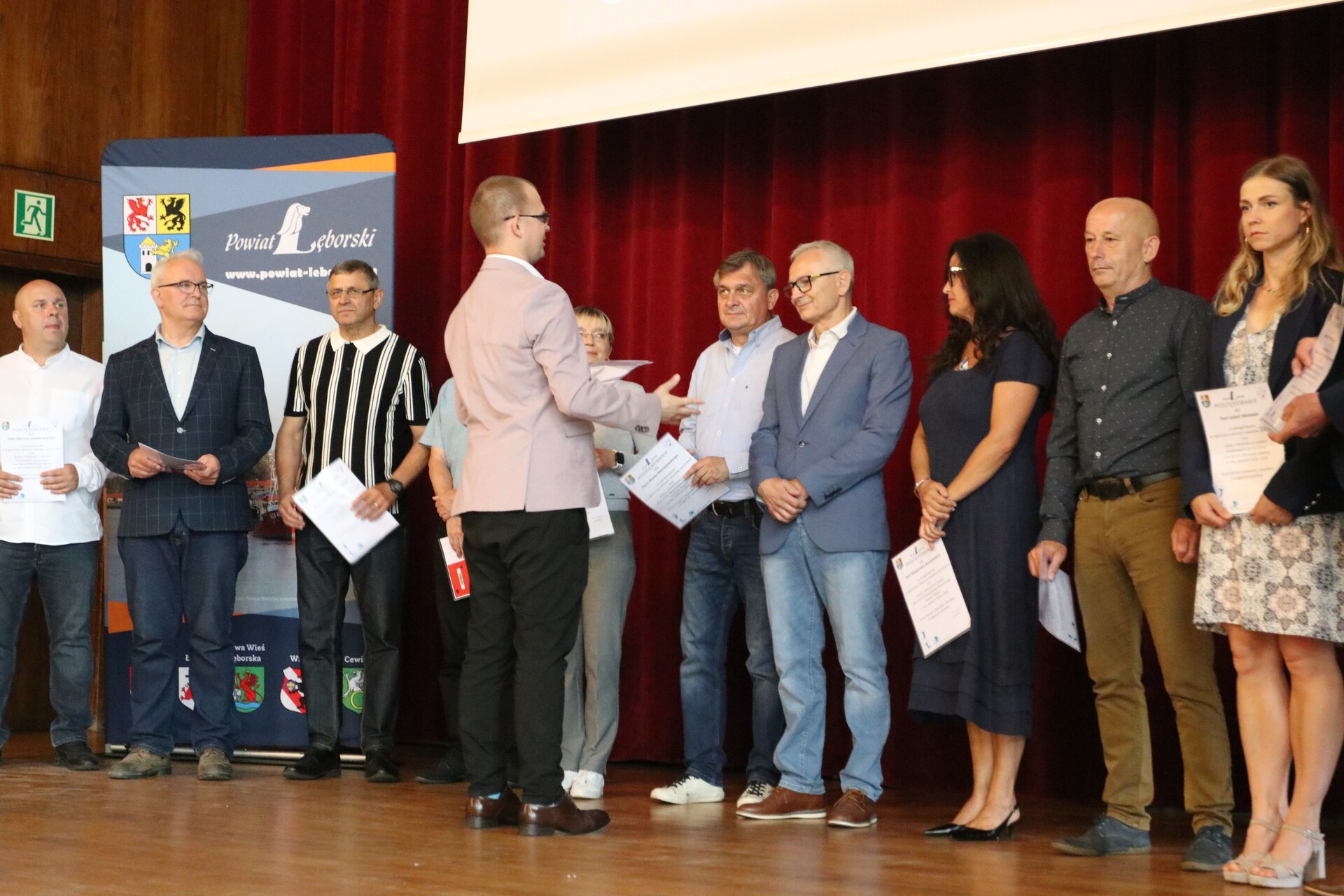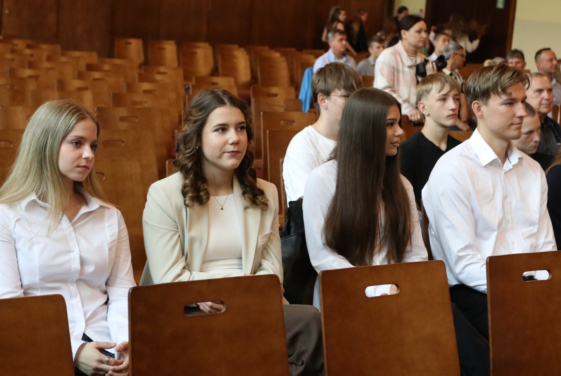 W auli Zespołu Szkół Mechaniczno – Informatycznych w Lęborku najlepsi sportowcy wśród uczniów odebrali nagrody za sukcesy w LIII Igrzyskach Dzieci, XXVI Igrzyskach Młodzieży Szkolnej, XXV Licealiadzie oraz Olimpiadach Specjalnych w roku szkolnym 2024/2025. Wśród gratulujących i wręczających nagrody był starosta lęborski Tomasz Litwin, burmistrz Miasta Lęborka Jarosław Litwin, zastępca wójta Gminy Nowa Wieś Lęborska Marian Kurzydło i sekretarz Gminy Cewice Joanna Parszewska.