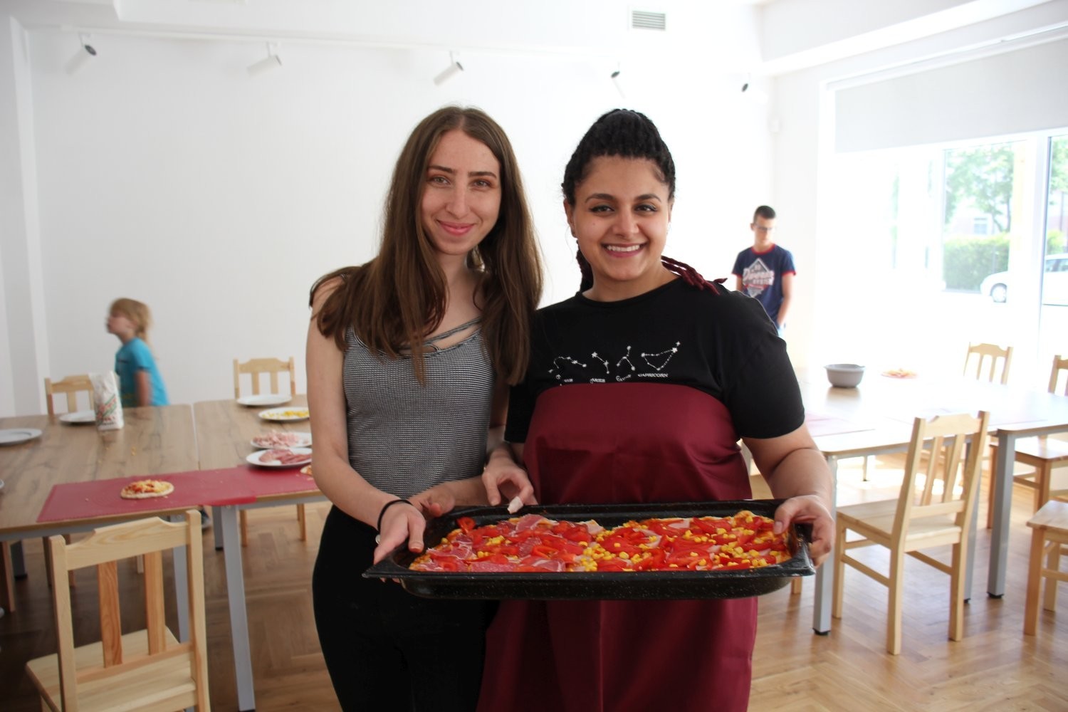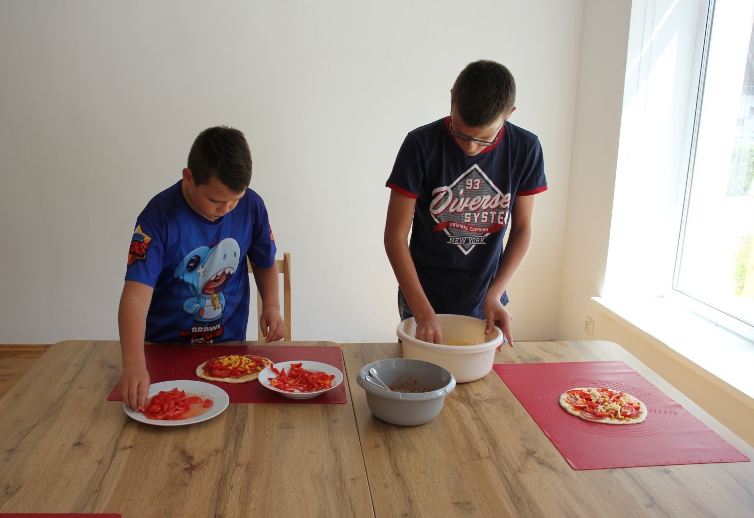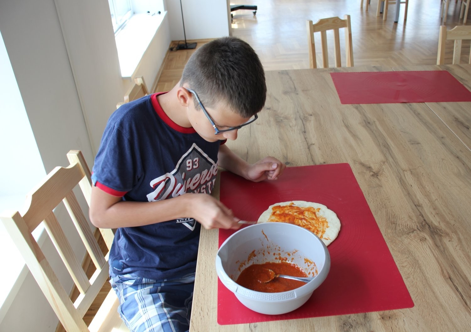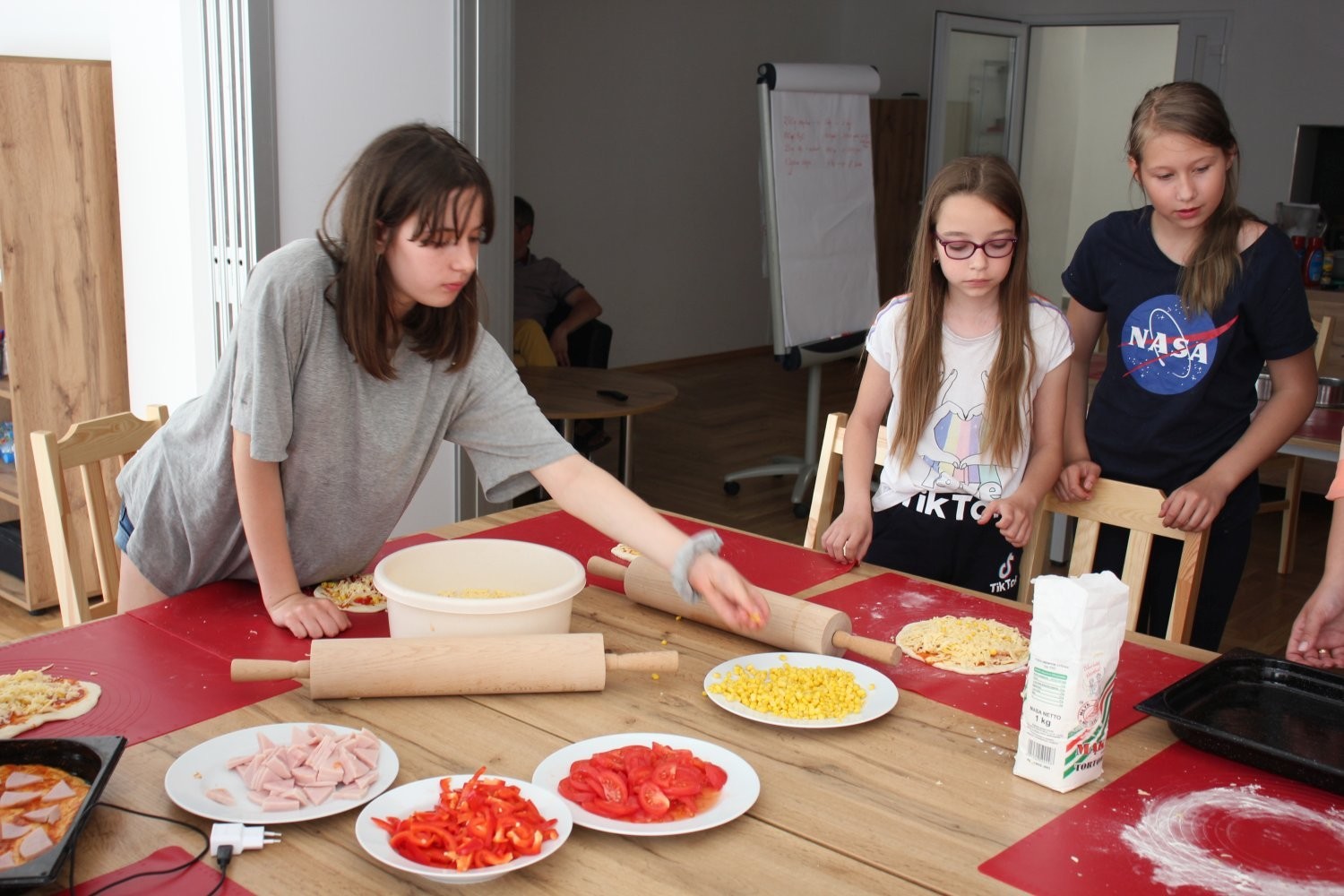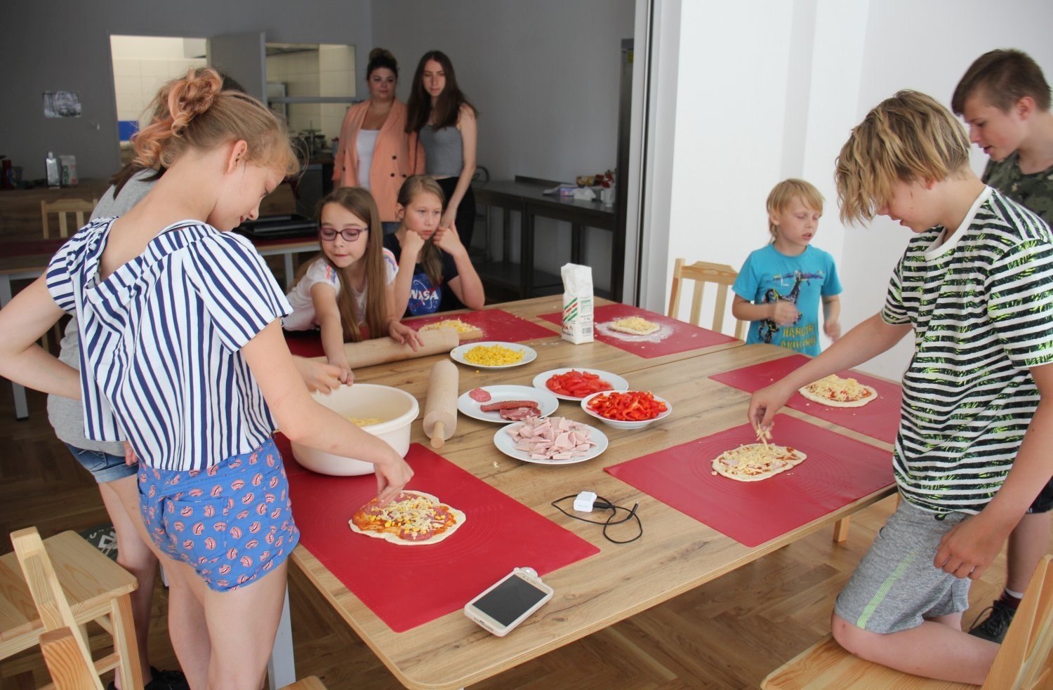 Najmłodsi mieszkańcy lęborskiej strefy rewitalizacji chętnie uczestniczą w zajęciach prowadzonych w Klubie Osiedlowym BAZA w ramach projektu "Ożywiony Lębork Nowy Świat- usługi społeczne dla mieszkańców obszaru rewitalizacji". Proponowane zajęcia pozwalają przede wszystkim na rozwijanie zainteresowań. Uczestnicy projektu biorą udział w zajęciach ruchowych, językowych, plastycznych oraz warsztatach kulinarnych. Tak było podczas środowych (24.06) zajęć w Klubie Osiedlowym BAZA gdy dzieci pod okiem animatorki oraz wolontariuszek z Turcji samodzielnie przygotowywały pizzę. Najmłodsi sami komponowali ulubione składniki i z utęsknieniem czekali na swoje dzieła. Było pysznie i pizza błyskawicznie znikała z talerzy.