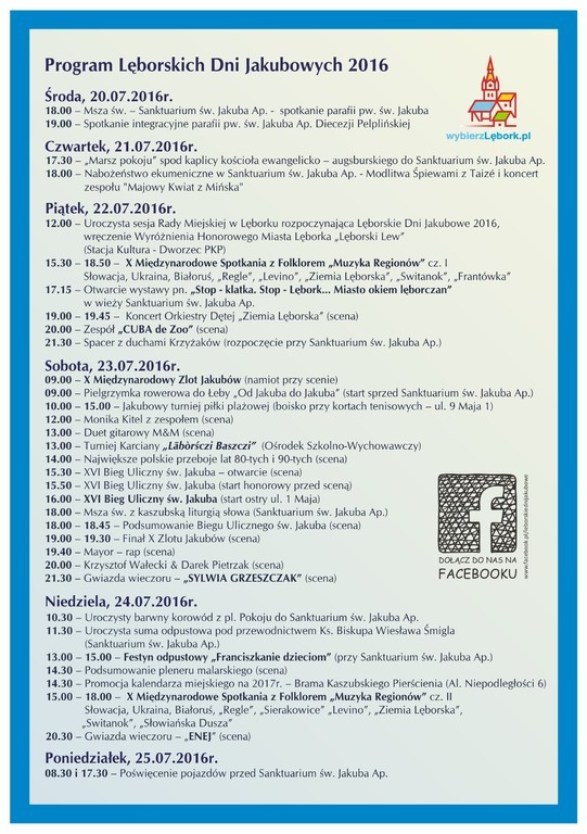 Przez kilka dni miasto „kipi" od imprez zarówno kulturalnych, rekreacyjnych, sportowych, typowo jarmarkowym, jak i wydarzeń o wymiarze religijno-duchowym. Św. Jakub Ap. jest od 1998 r. Patronem Lęborka.