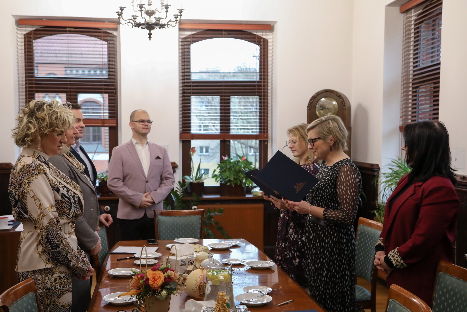W uroczystym wręczeniu udział wzięli Mariola Małecka – dyrektor Szkoły Podstawowej nr 3 w Lęborku i Wiesława Wojciechowicz – dyrektor Przedszkola Nr 9 w Lęborku oraz nadzorujący w lęborskim ratuszu zadania oświatowe zastępca Burmistrza Krzysztof Król i Agnieszka Redźko – kierownik Referatu Oświaty.