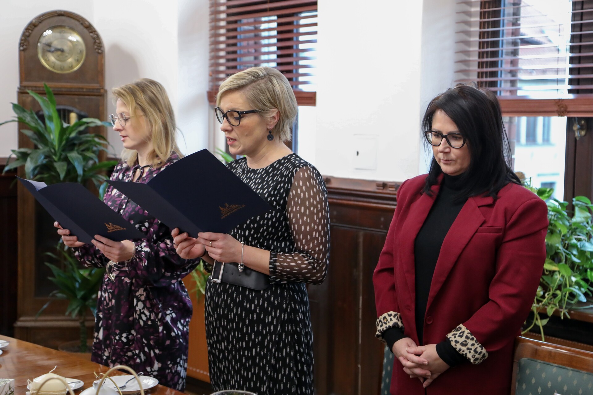 W gabinecie burmistrza odbyła się miła uroczystość wręczenia dwóch aktów mianowania nauczycielom kontraktowym, którzy uzyskali tytuł nauczyciela mianowanego. Pierwszy akt nadania stopnia awansu zawodowego burmistrz wręczył Justynie Klinkosz – Pujszy, pedagogowi szkolnemu i pedagogowi specjalnemu, nauczycielowi współorganizującemu kształcenie specjalne w Szkole Podstawowej nr 3 w Lęborku. Drugi akt powędrował do Justyny Niewęgłowskiej, nauczyciela przedszkola w Przedszkolu Nr 9 w Lęborku.