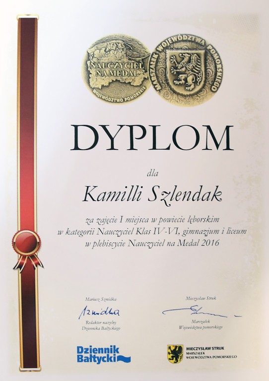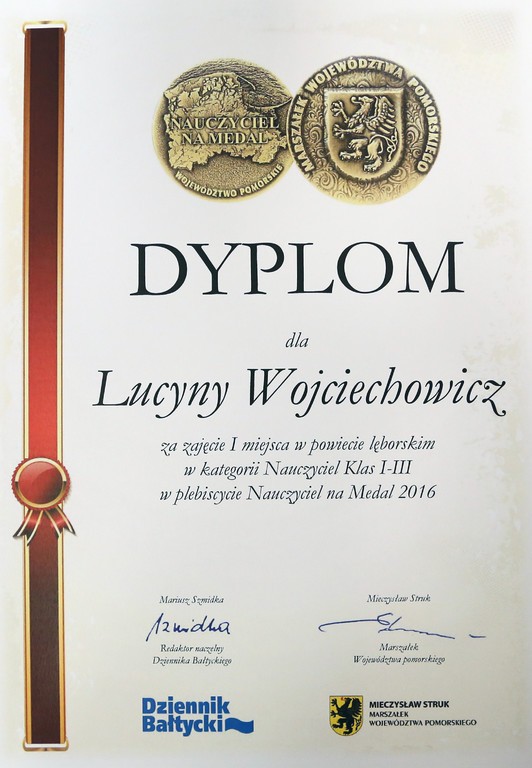 Burmistrz Lęborka Witold Namyślak pogratulował obu Paniom sukcesu, który jest dowodem uznania dla ich pracy ze strony uczniów i ich rodziców.
