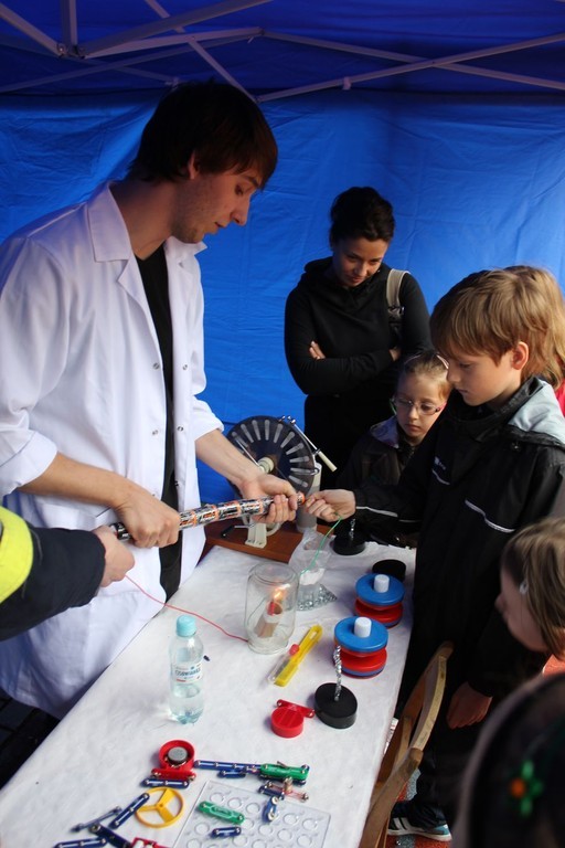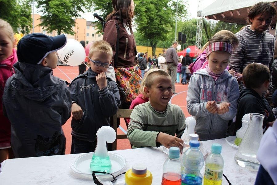 Sobotni (25 maja) Festiwal Nauki przyciągnął na boisko „Orlik" przy Pl. Piastowskim całe rodziny. W tematycznych namiotach uczestnicy pod okiem studentów mogli eksperymentować do woli. Na scenie co rusz odbywały się pokazy naukowe dla wszystkich o intrygujących tytułach: „Merlin i inni chemicy", „Powietrze, próżnia i ciśnienie" czy „Dynamiczny Newton".