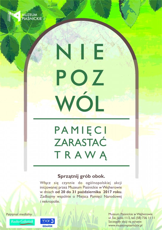 Muzeum Piaśnickie w Wejherowie w dniu 20 października (piątek), na zabytkowym wejherowskim cmentarzu przy ul. 3 Maja zainauguruje ogólnopolską akcję pt.: „Nie pozwól pamięci zarastać trawą... Sprzątnij grób obok”.