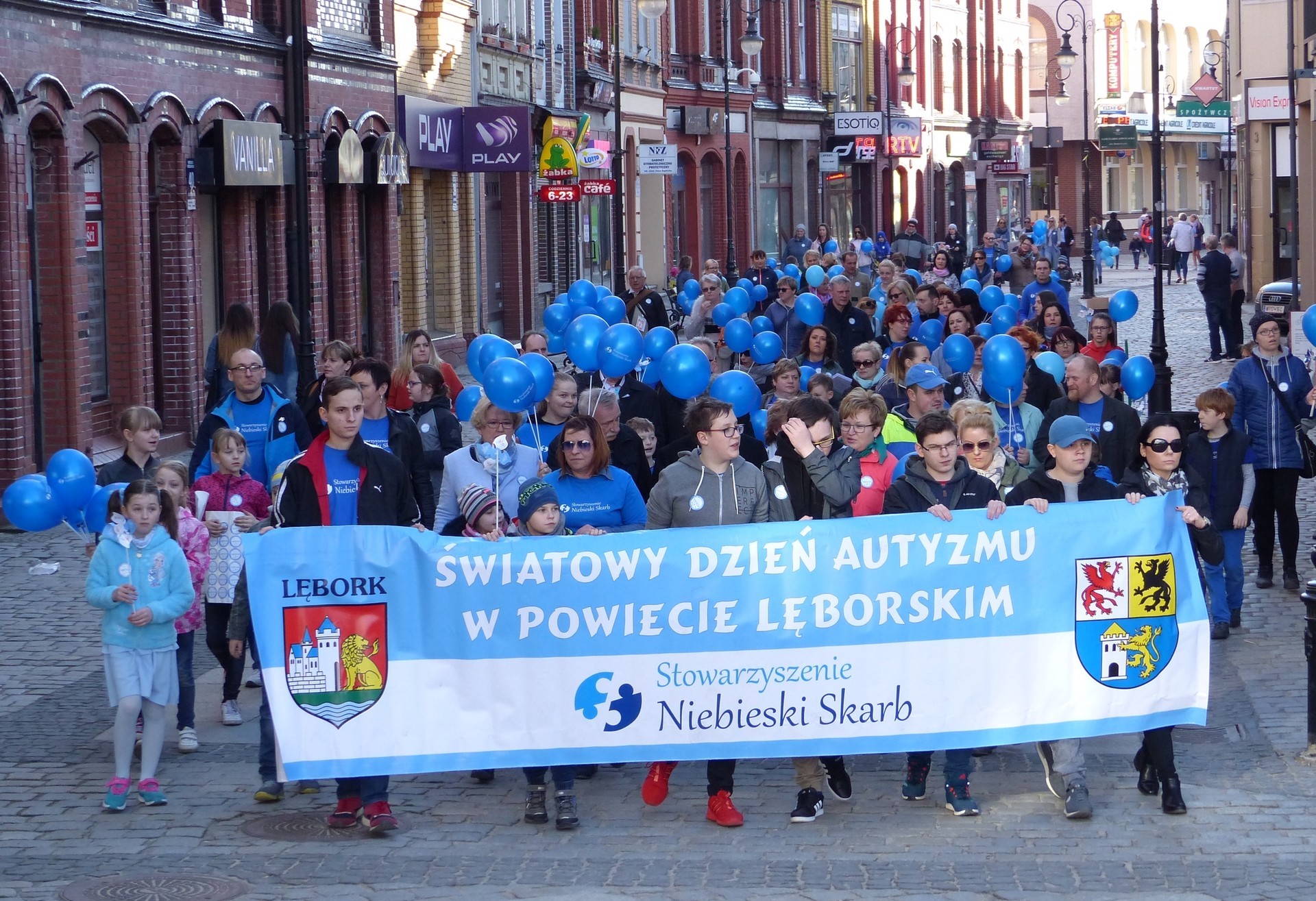 Finałem Dni Autyzmu był przemarsz 7 kwietnia br. ponad dwustuosobowego niebieskiego korowodu ulicą Staromiejską na plac Pokoju. Baloniki, wiatraczki, okolicznościowy baner i kolor niebieski miał symbolizować solidarność z osobami z autyzmem. 2 kwietnia na całym świecie obchodzimy Dzień Wiedzy o Autyzmie. Podczas finału marszu na placu Pokoju z udziałem władz miasta i powiatu dzieci ze Stowarzyszenia Pomocy Osobom ze Spektrum Autyzmu „Niebieski Skarb”, organizatora wydarzenia, zaprezentowały występ muzyczny do piosenki zespołu Luxtorpeda pt. „Autystyczny”. Dzieci do występu przez kilka tygodni przygotowywały się w Młodzieżowym Domu Kultury w Lęborku, który użyczył też instrumentów. Rozdano także nagrody w konkursie plastycznym „Autyzm: wiem, rozumiem, pomagam”.