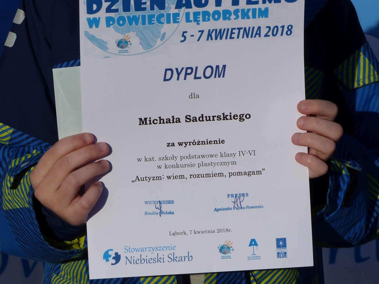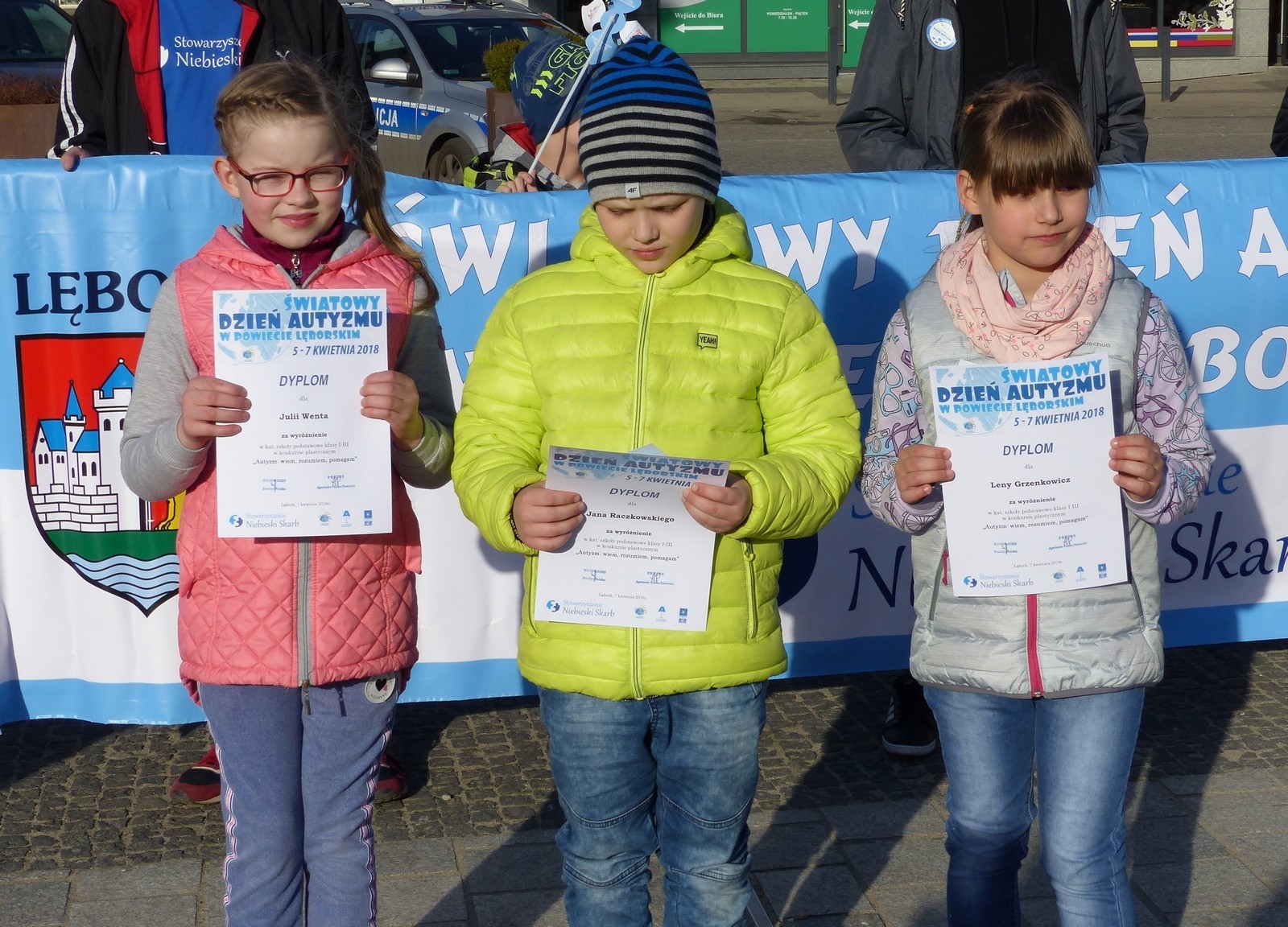 7 kwietnia br. na placu Pokoju podczas finału Marszu dla Autyzmu poznaliśmy laureatów konkursu „Autyzm: wiem, rozumiem, pomagam!” Podtytuł tegorocznej edycji brzmiał „Autyzm. Poznaj mój świat zanim ocenisz” i był skierowany dla uczniów szkół podstawowych klas I-VI. Na konkurs wpłynęło 220 prac z 18 placówek z powiatu lęborskiego oraz gminy Łęczyce i Linia. Nagrodzono i wyróżniono 18 uczniów. Nagrodzeni i wyróżnieni otrzymali nagrody rzeczowe dofinansowane ze środków Powiatu Lęborskiego.