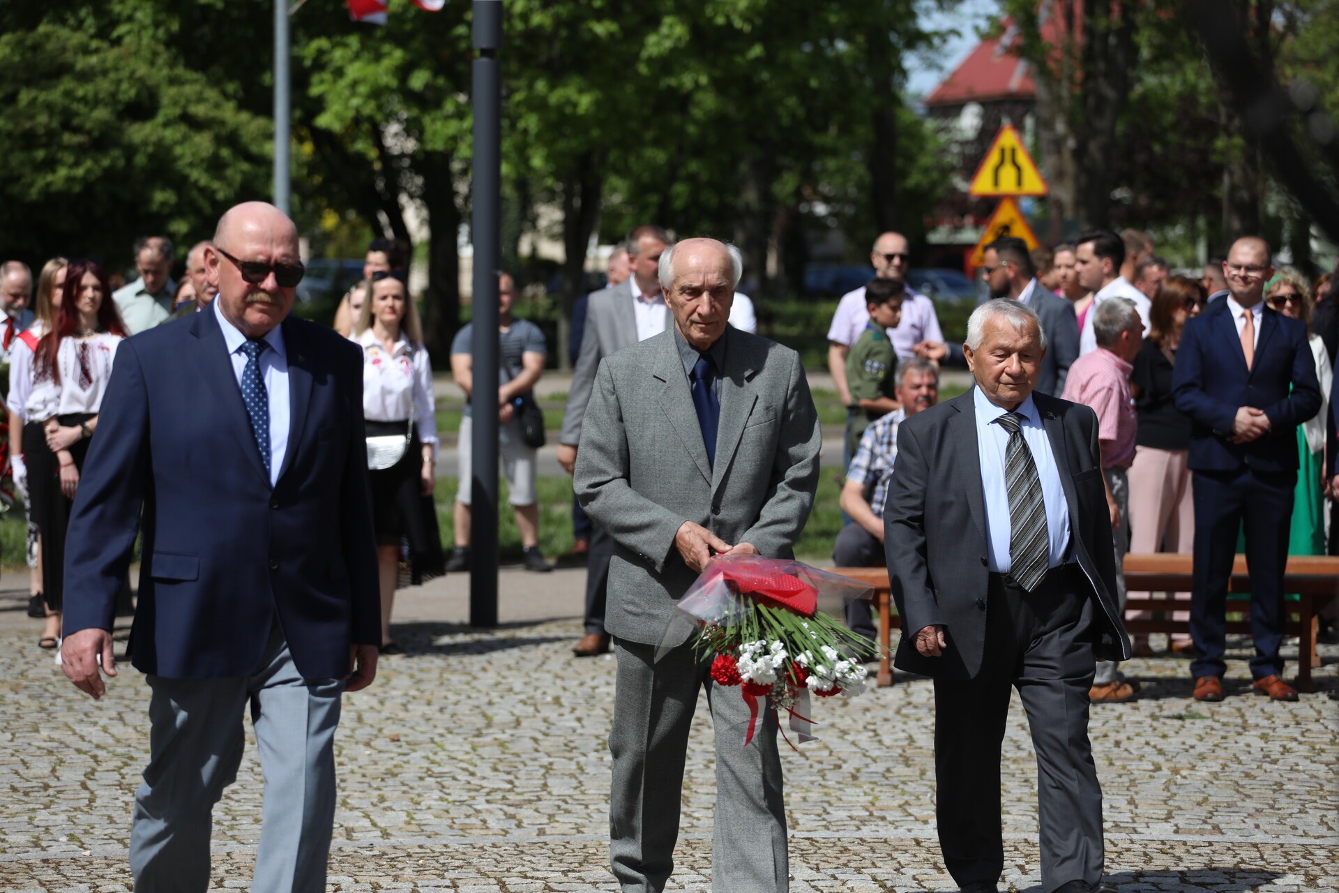 Pod Obeliskiem Niepodległości delegacje władz samorządowych, kombatantów, organizacji pozarządowych, szkół, służb mundurowych oraz mieszkańców złożyły wiązanki kwiatów. Werble odegrała Grupa Perkusyjna Tremolo.