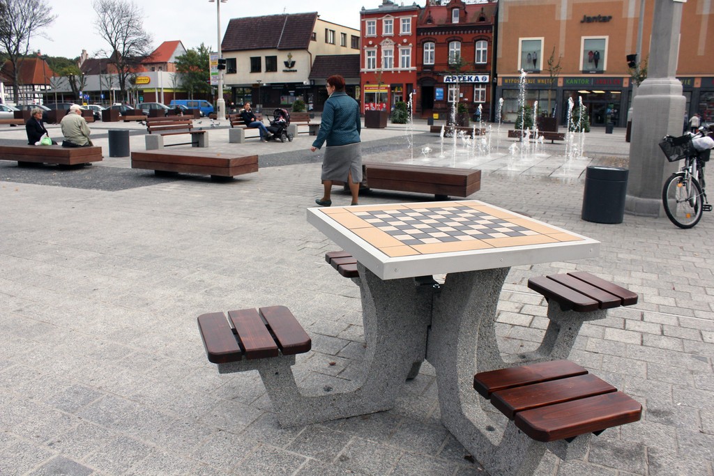 Niedawno Plac Pokoju wzbogacił się o dwa stoły szachowe, które od samego początku cieszą się dużym zainteresowaniem mieszkańców. Przy sprzyjającej pogodzie nie brakuje grających w szachy bądź w warcaby.