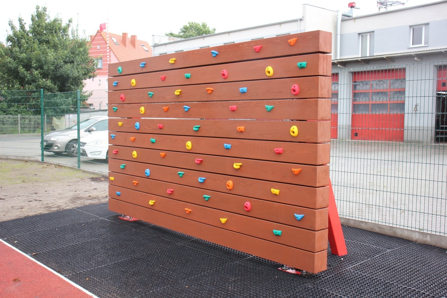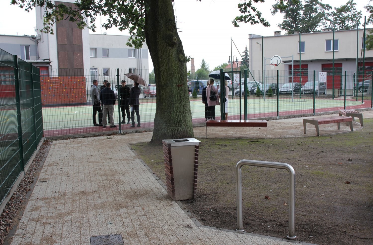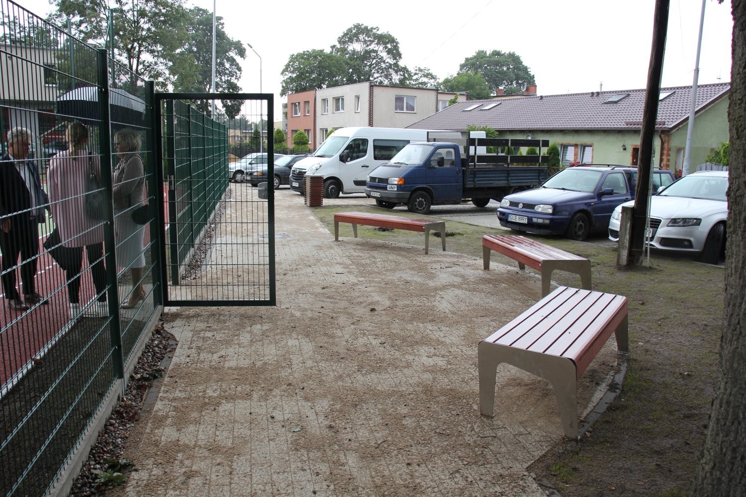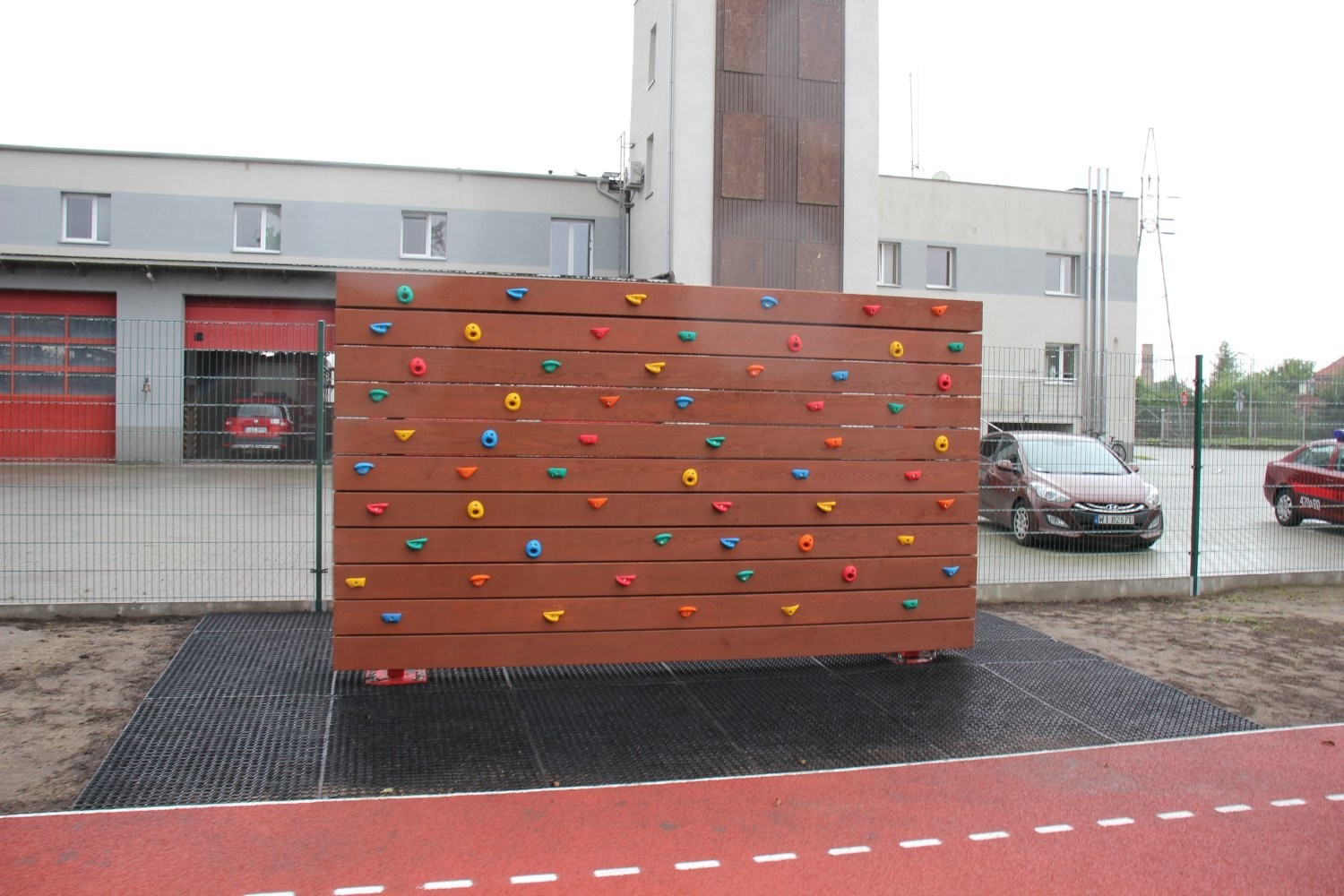 Teren inwestycji odwiedził Burmistrz Lęborka Witold Namyślak wraz z zastępcami, sekretarzem miasta i radnymi. Obecny był także Komendant PSP Lębork st. kpt. Piotr Krzemiński. Straż pożarna udostępniła część terenu pod boisko. Oprócz funkcji sportowo-rekreacyjnej nowe miejsce realizować będzie też funkcje edukacyjne. Wzdłuż bieżni rozmieszczone zostały tablice poglądowe dotyczące bezpieczeństwa pożarowego, które będą służyły celom edukacyjnym podczas wizyt dzieci w siedzibie Komendy Powiatowej Państwowej Straży Pożarnej w Lęborku.