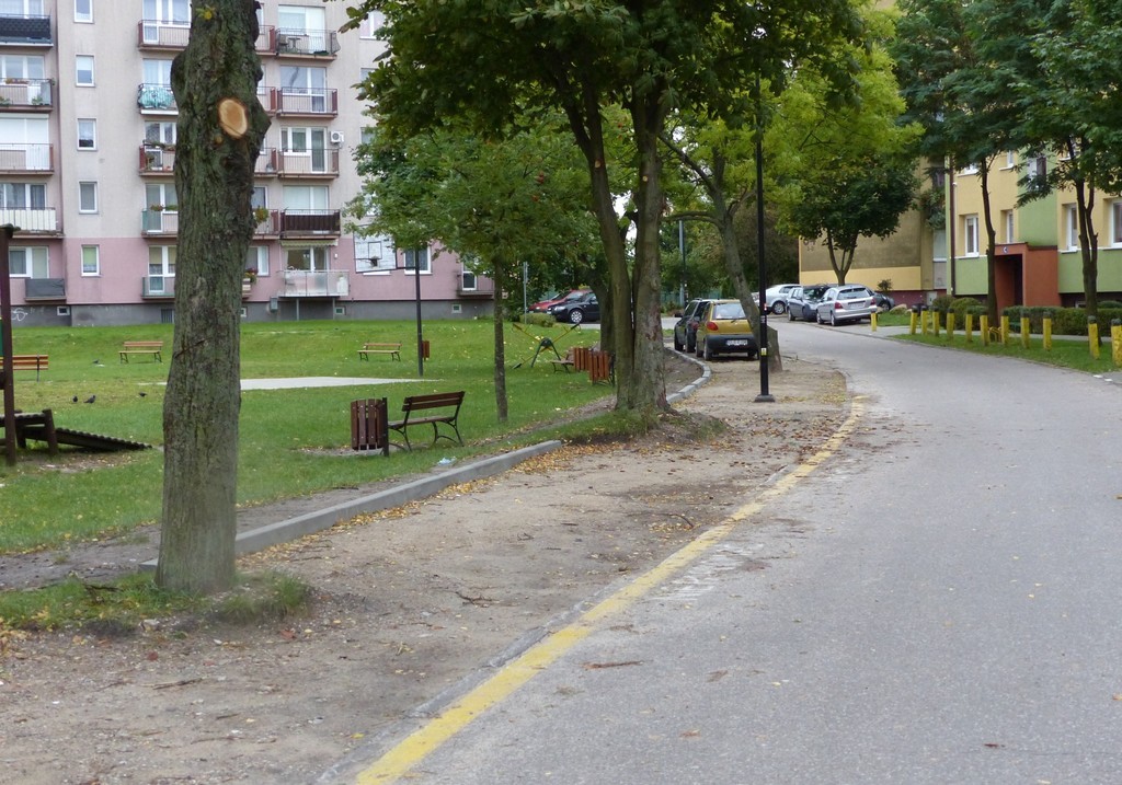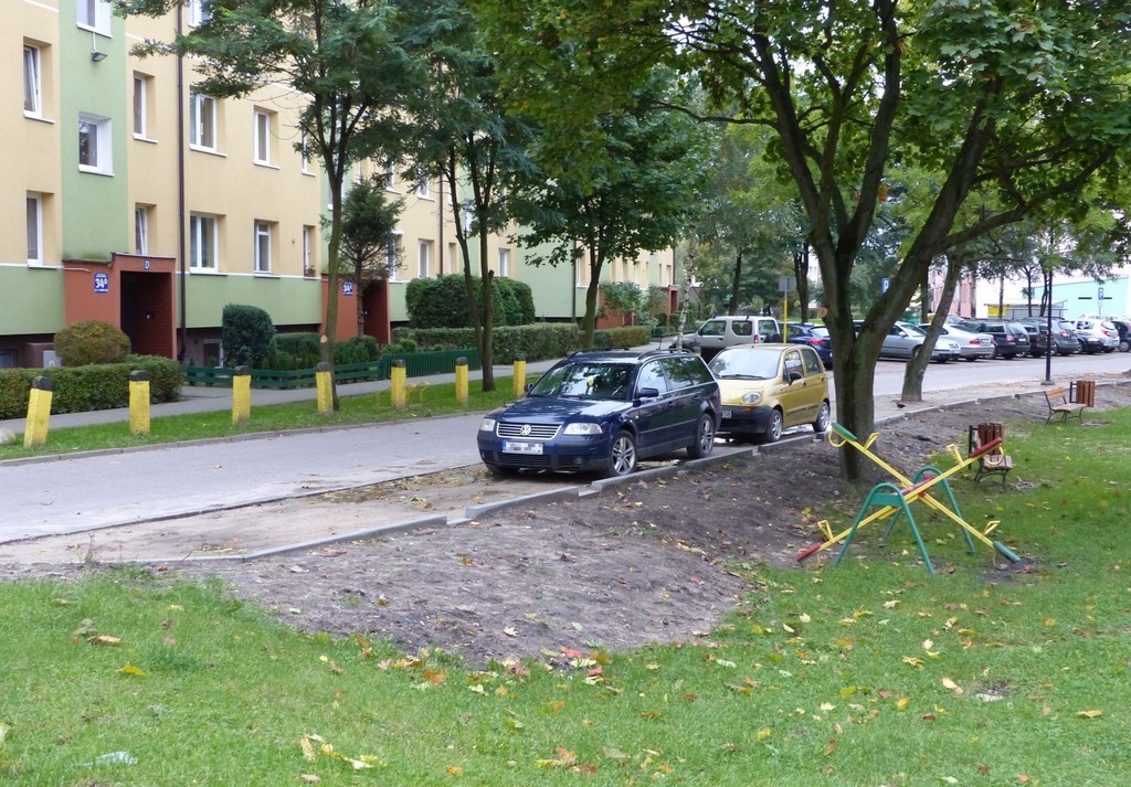 Na przełomie września i października br. na osiedlu przy ulicy Wojska Polskiego powstało kilkanaście nowych miejsc parkingowych. 12 miejsc postojowych wygospodarowano na ulicy przy budynku nr 34 C-H. Prace drogowe polegały na montażu krawężników i utwardzeniu terenu podbudową z kruszywa na powierzchni 182m2. Koszt budowy nowych miejsc parkingowych na osiedlu wyniósł 18.300 zł. Parkingową inwestycję zrealizowała lokalna firma MAXBRUK.