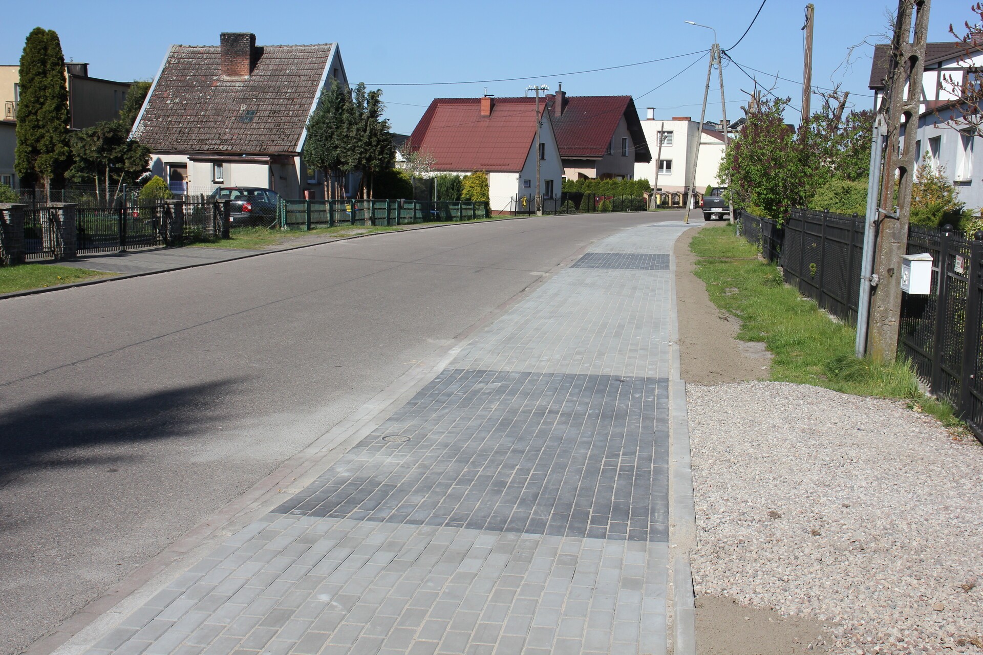Przy ulicy Komuny Paryskiej wybudowano nowy chodnik. Na około 350-metrowym odcinku od budynku nr 36 w kierunku zachodnim do tzw. „zakrętu” położono dwumetrowej szerokości chodnik z kostki betonowej z obrzeżami oraz wykonano zjazdy na posesje w pasie chodnika. Koszt budowy chodnika wyniósł 113 tysięcy złotych. Inwestycję zrealizowała lokalna firma MAXBRUK.