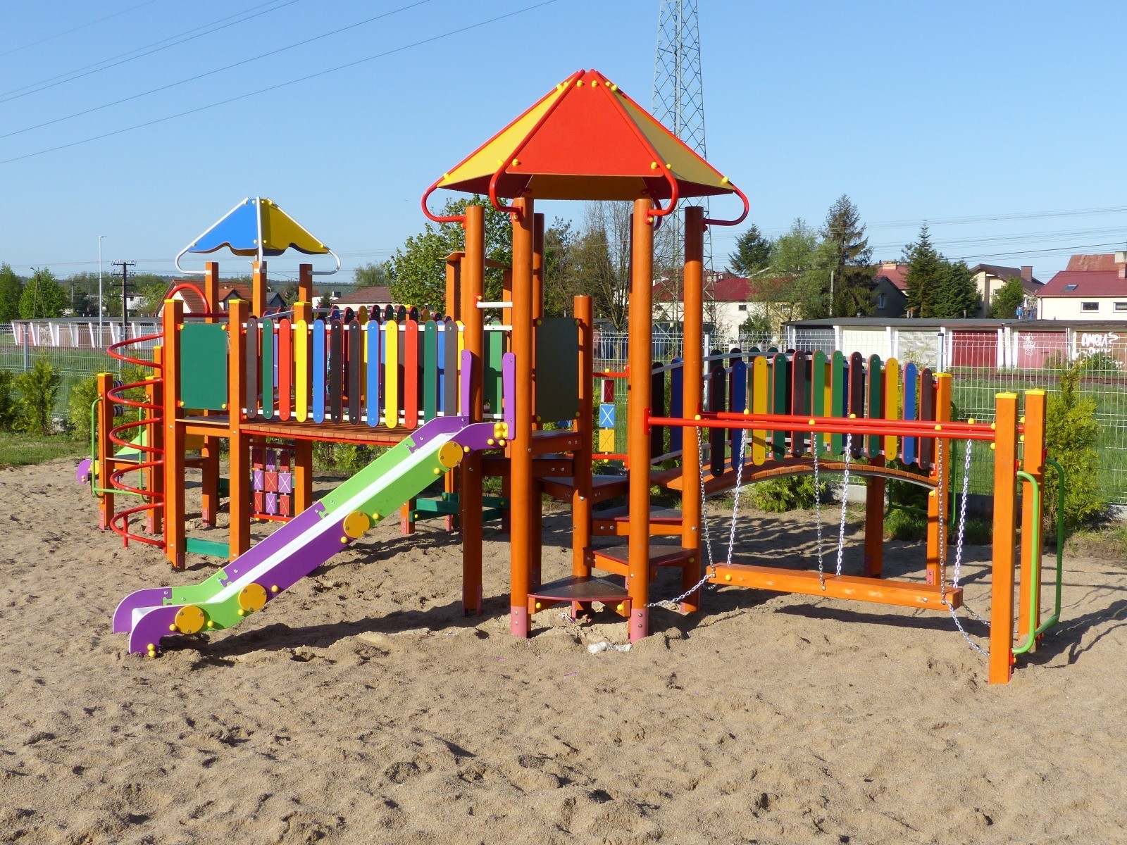 Na powiększonym i zmodernizowanym placu zabaw wydzielono 3 strefy zabawowe dla maluchów, średniaków i starszaków. W każdej ze stref zamontowano platformy z drabinkami i zjeżdżalniami oraz bujaki sprężynowe. Na przedszkolnym placu pojawiła się też altana do prowadzenia zajęć letnich dla 30 dzieci oraz ławki i śmietniki. Przy okazji odnowione zostały stare sprzęty na placu zabaw oraz zamontowano monitoring (4 kamery, centrala monitoringu z WIFI i nagrywarka). W kolejnych tygodniach na placu zabaw pojawią się dwie piaskownice oraz uzupełniona zostanie zieleń. Wcześniej rury ciepłownicze na terenie przedszkola wymieni MPEC. Koszt modernizacji przedszkolnego placu zabaw zrealizowanej przez firmę AVIS Ekologiczne Place Zabaw z Warszawy wyniósł 200 tys. zł.