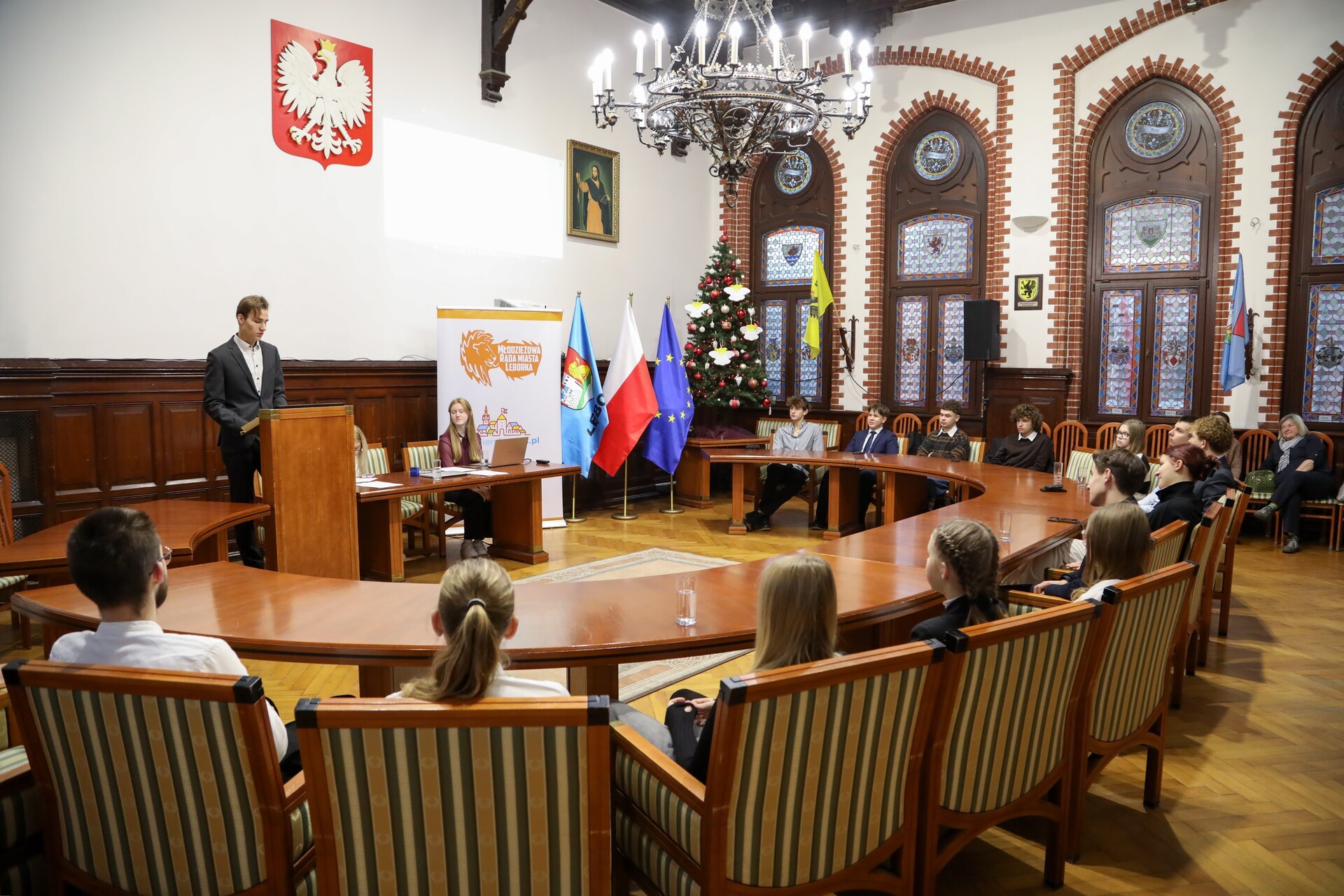 10 grudnia 2024 r. w Sali Rajców Urzędu Miejskiego odbyła się VI Sesja V kadencji Młodzieżowej Rady Miasta Lęborka. Na początku obrad Przewodniczący Patryk Erni podsumował dotychczasowe działania rady.