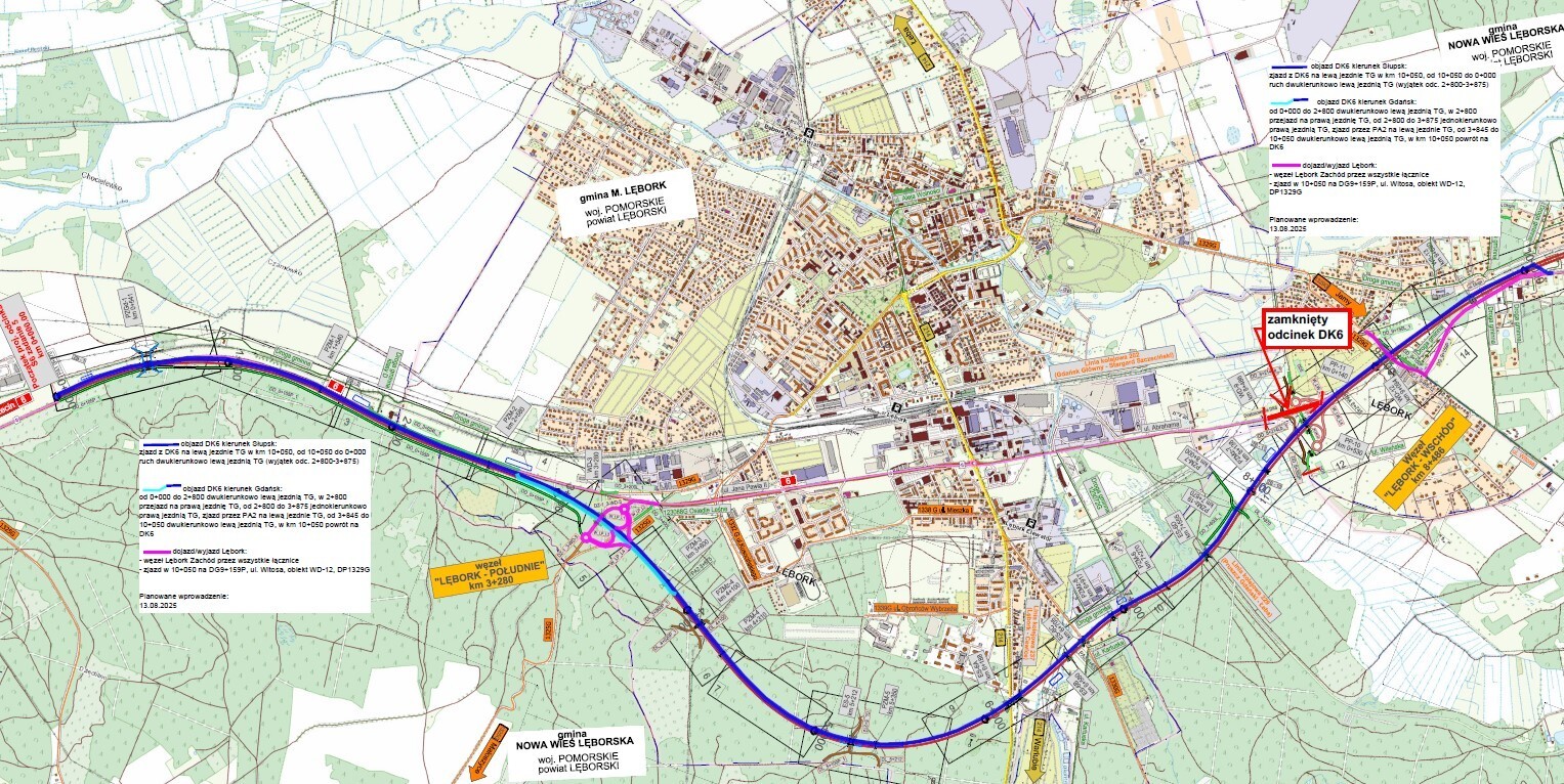 Od 13 sierpnia 2025 r. na około dwa miesiące wprowadzona zostanie istotna zmiana w organizacji ruchu na odcinku drogi krajowej nr 6. Zamknięty zostanie fragment starej drogi krajowej nr 6 na odcinku od stacji Orlenu w Mostach do węzła Lębork - Wschód wraz z całym węzłem. Zmiany spowodowane są trwającą budową drogi ekspresowej S6.