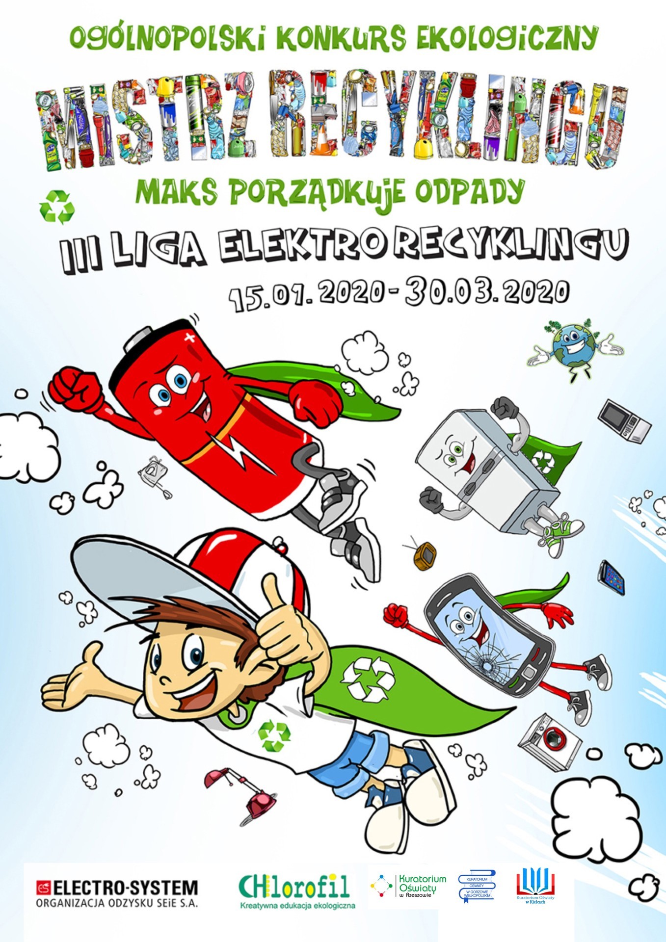 Dnia 15 stycznia 2020 rozpocznie się VI edycja ogólnopolskiego konkursu ekologicznego pt. „Mistrz Recyklingu Maks porządkuje odpady” dla uczniów klas 3-7 szkół podstawowych. To konkurs o odpadach i o tym, dlaczego tak ważna jest ekokoncepcja: ułatwia prawidłowy odzysk i recykling urządzeń AGD RTV wszechobecnych w naszym codziennym życiu.