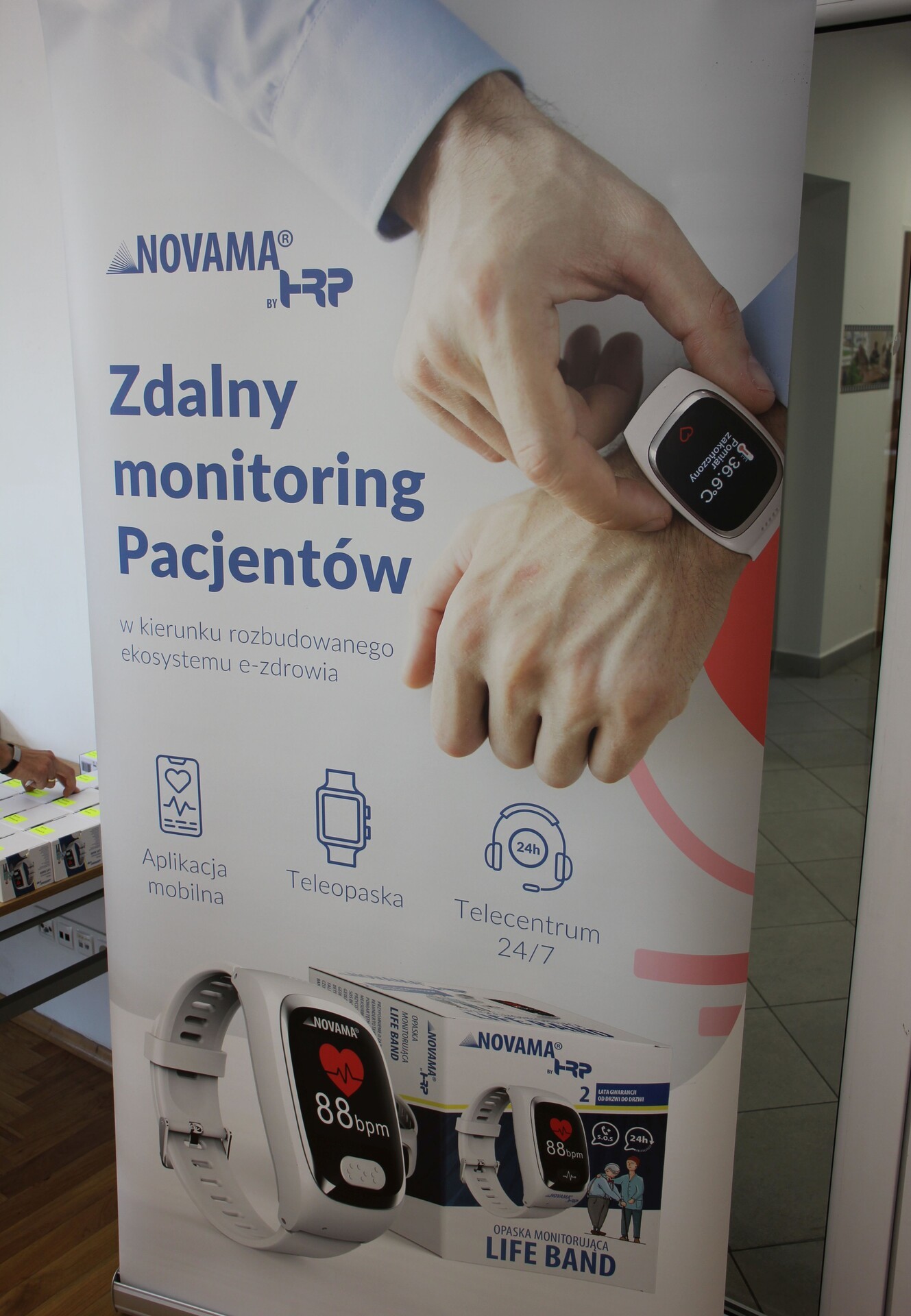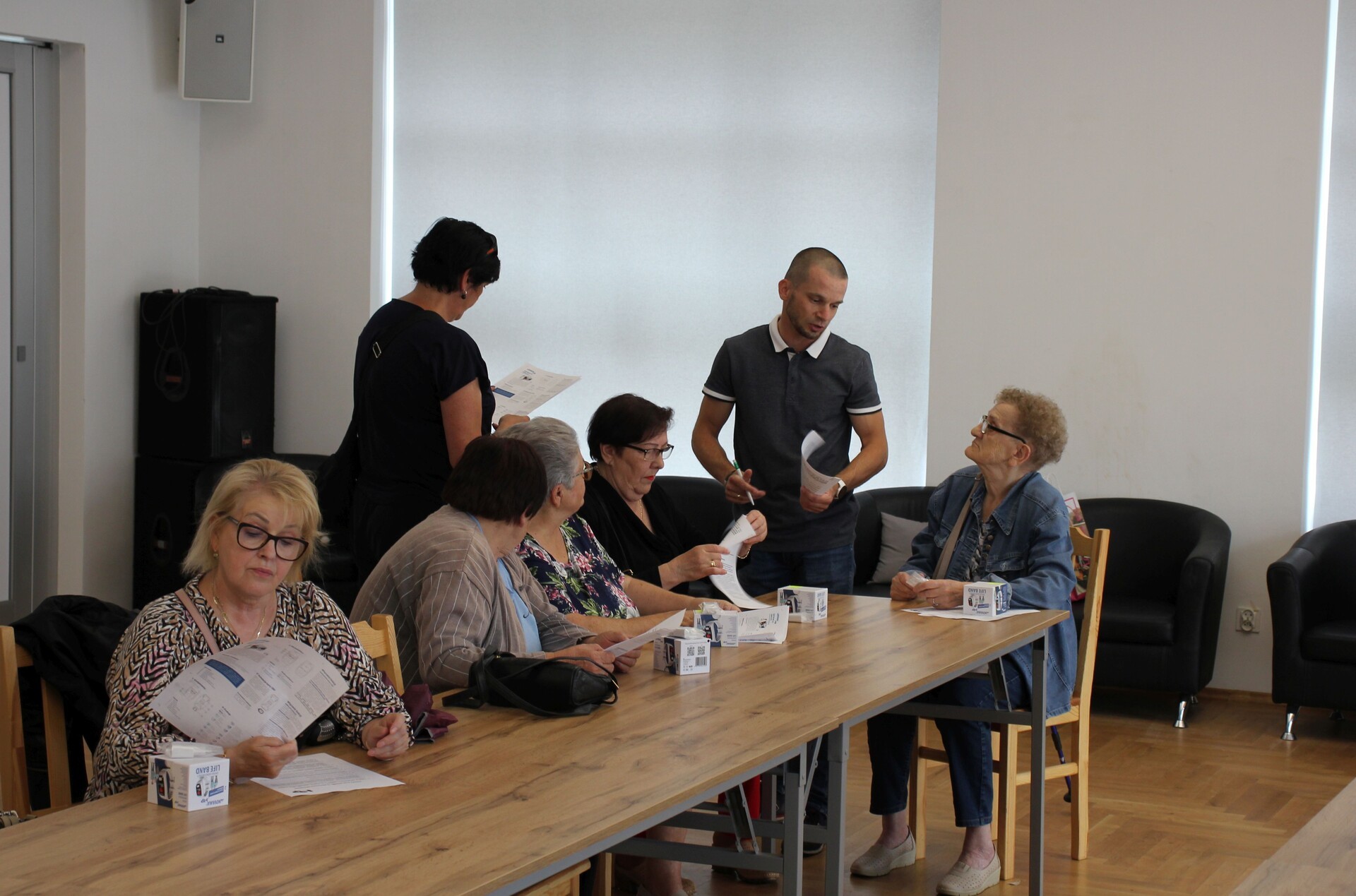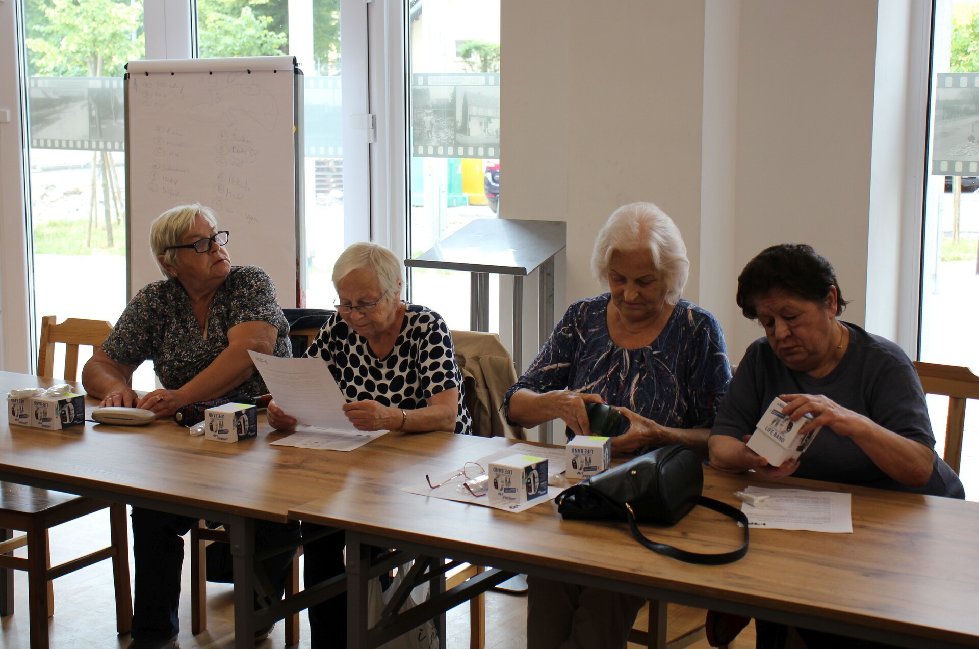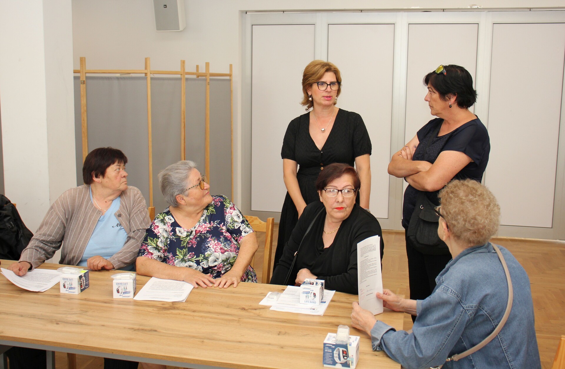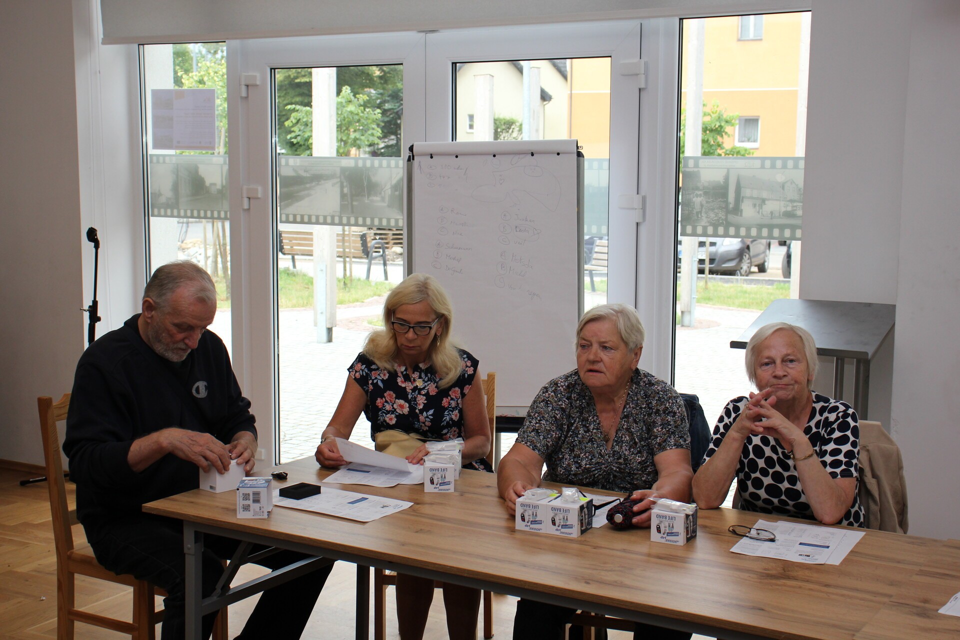 Na spotkaniu z udziałem przedstawiciela firmy dostarczającej opaski oraz kierownik MOPS Elżbiety Michalskiej przeprowadzono szkolenie dla seniorów z zakresu obsługi urządzenia oraz jego podstawowych funkcjonalności. Opaska posiada przycisk SOS, który łączy się z całodobowym telecentrum opieki, detektor upadku, lokalizator GPS oraz mierzy w czasie rzeczywistym puls, ciśnienie, saturację i temperaturę. Poprzez aplikacje odczyty z opaski mogą być śledzone w telefonie przez seniora lub bliską mu osobę.