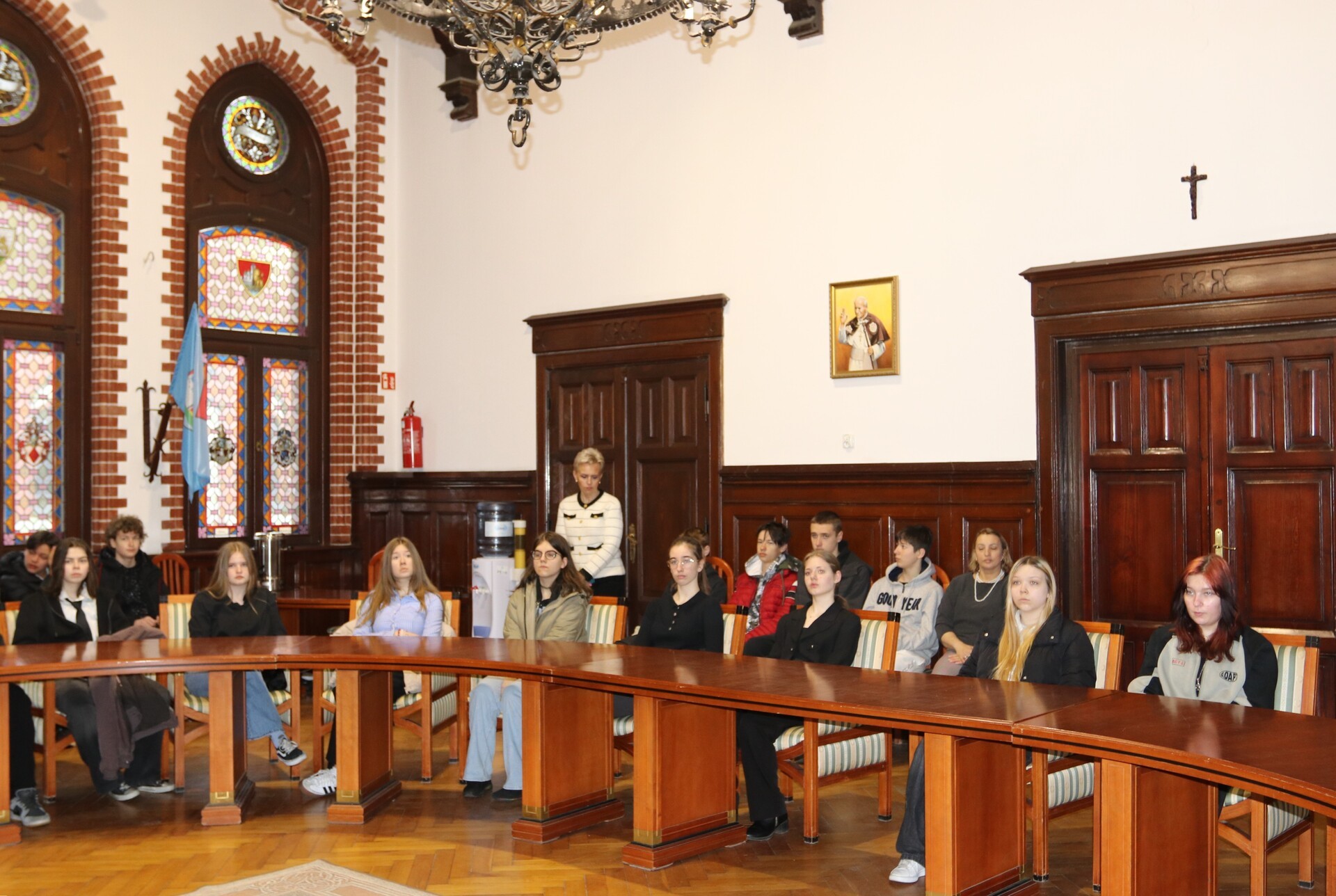 W trakcie spotkania burmistrz opowiedział o specyfice swojej pracy – codziennych zadaniach, wyzwaniach i trudnościach, z jakimi mierzy się na co dzień. Na zakończenie złożył ósmoklasistom serdeczne życzenia i życzył powodzenia na zbliżających się egzaminach. Uczniowie mieli okazję zwiedzić również skarbiec i dowiedzieć się wile historycznych ciekawostek dotyczących zabytkowego ratusza.