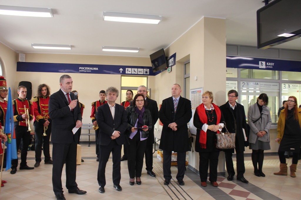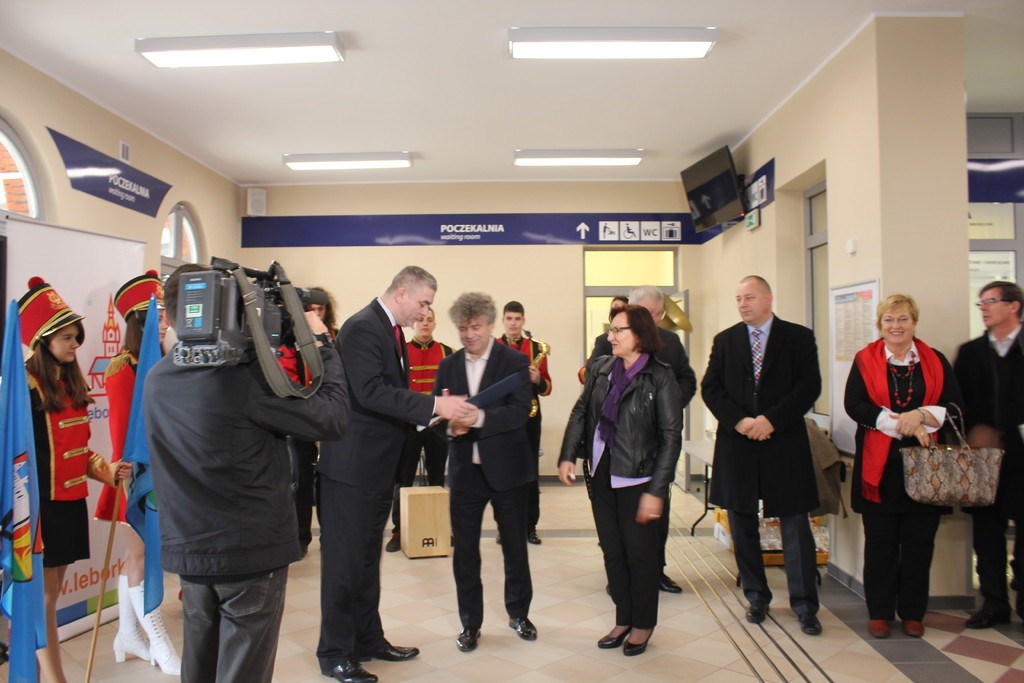 Wczoraj w lęborskim dworcu PKP odbyło się przekazanie do użytku wyremontowanych pomieszczeń. W uroczystościach wzięli udział min przedstawiciele Samorządu Lęborka - Burmistrz Miasta Witold Namyślak, Zastępca Burmistrza Alicja Zajączkowska oraz Krzysztof Piekarski Dyrektor Regionalny do spraw eksploatacji nieruchomościami PKP SA w Gdańsku.