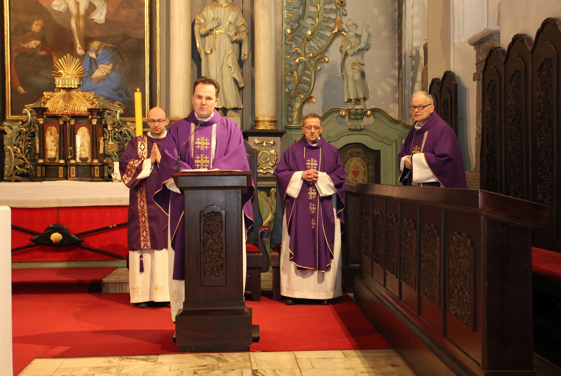 Rano 10 marca br. w Sanktuarium św. Jakuba Ap. odprawiona została Msza Św. w intencji księży i innych osób zamordowanych przez Sowietów 77 lat temu, na terenie plebanii kościoła, ludności cywilnej miasta oraz sprawców tej zbrodni. Proboszcz o. Robert Wołyniec w kazaniu przywołał tragiczną historię z plebanii sprzed lat i przypomniał, że podobne zbrodnie dzieją się i teraz za wschodnią granicą.