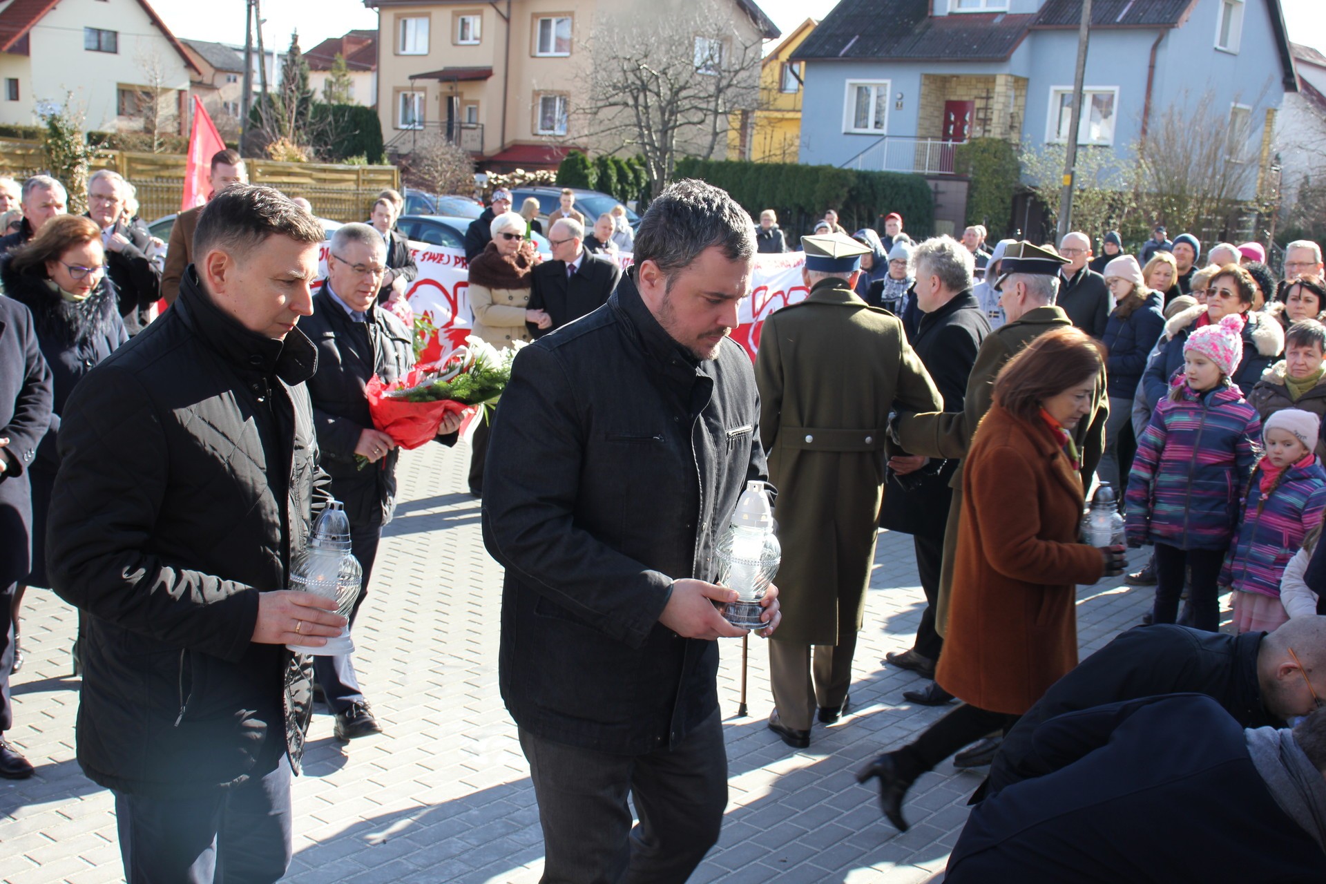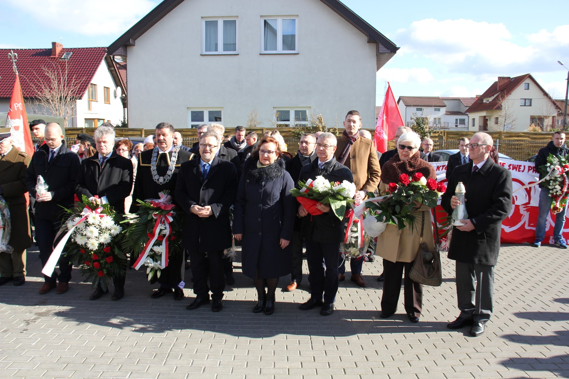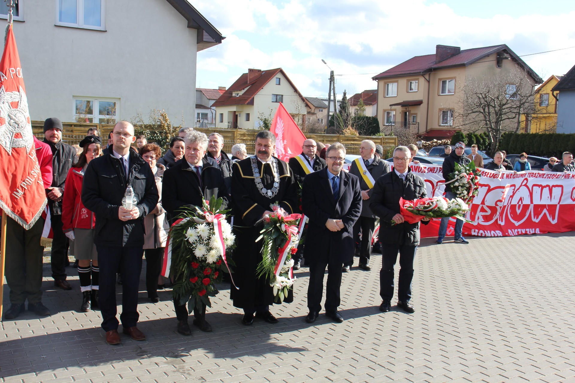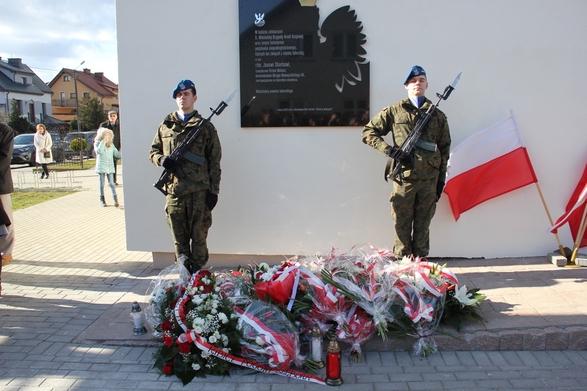 Po Mszy rodzina rotmistrza Jana Skorba, kombatanci, delegacja samorządu miejskiego, powiatowego i wojewódzkiego oraz delegacje służb mundurowych, organizacji społecznych i politycznych, szkół złożyły wiązanki kwiatów i zapaliły znicze pod tablicą poświęconą żołnierzom 5. Wileńskiej Brygady Armii Krajowej i innym bohaterom podziemia niepodległościowego, w tym rotmistrzowi Janowi Skorbowi.