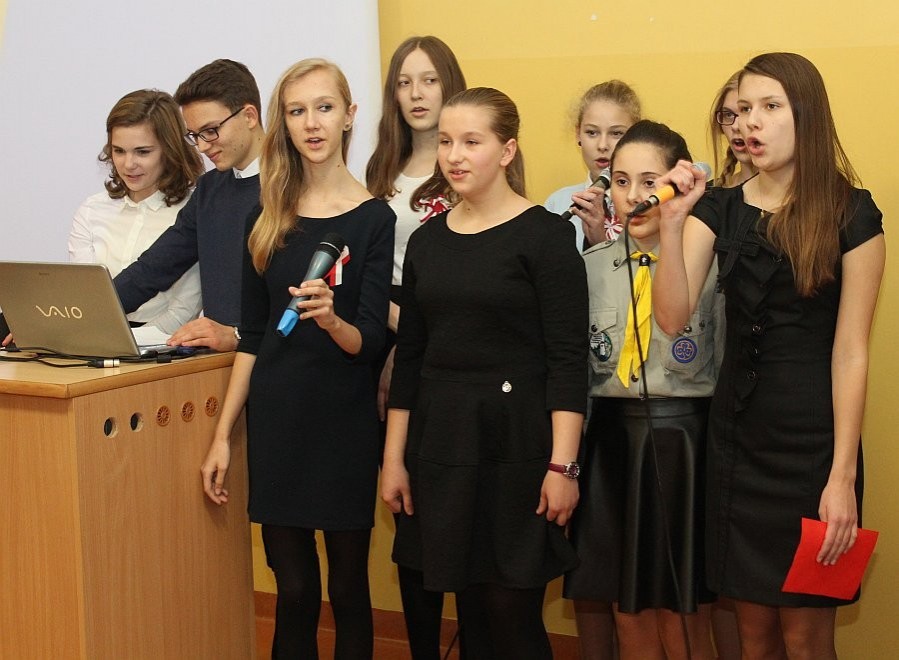 Młodzież, uczniów Społecznego Gimnazjum Językowego w Lęborku do koncertu pieśni i piosenek patriotycznych przygotowały Panie Małgorzata Koss i Magdalena Krefft.