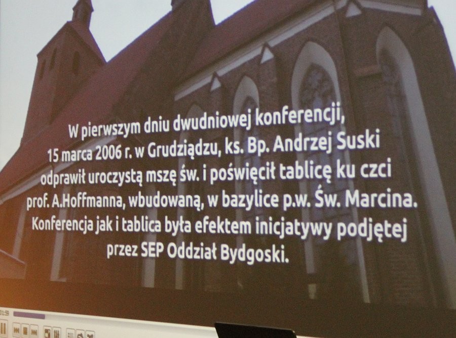 Gość uroczystości, Władysław Baryło – Prezes Zarządu Oddziału Stowarzyszenia Elektryków Polskich ze Słupska przedstawił sylwetkę wybitnego współtwórcy elektroenergetyki polskiej prof. inż. Alfonsa Hoffmanna, który budował w naszym kraju w tym na Pomorzu przed i powojenną energetykę. Zebrani obejrzeli także film poświęcony prof. Hoffmannowi.