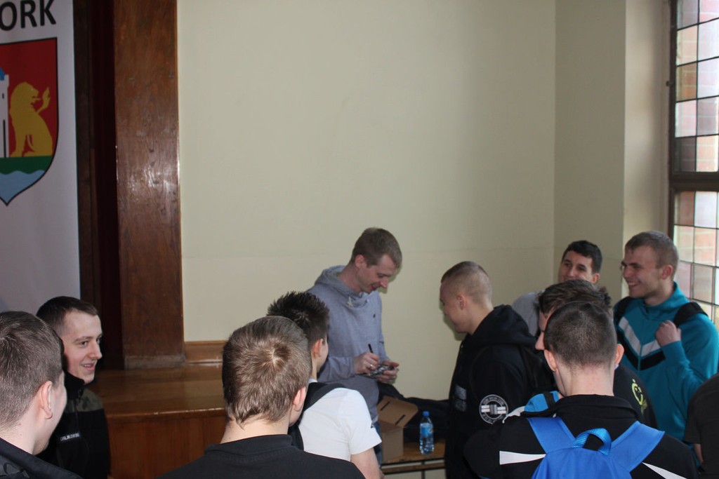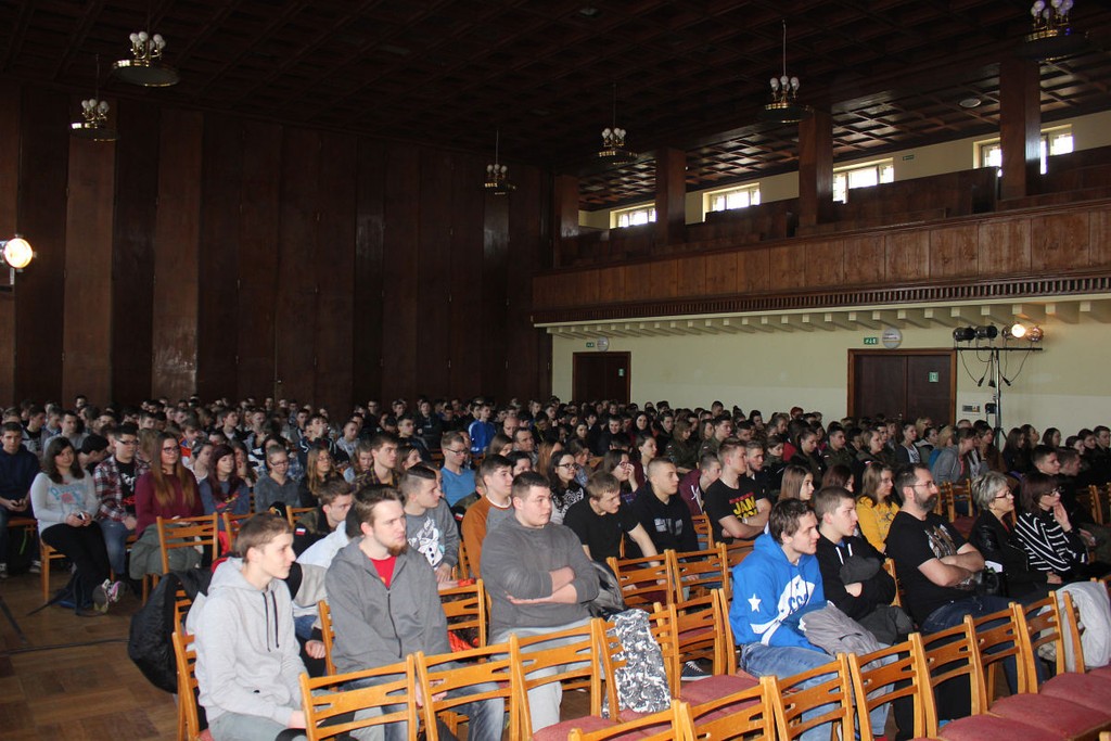 W miniony piątek na auli Zespołu Szkół Mechaniczno-Informatycznych odbyły się dwa koncerty Tadeusza Polkowskiego, rapera śpiewającego kawałki patriotyczne. Młodzież z lęborskich szkół średnich i gimnazjów miała okazję poznać repertuar artysty, który nawiązywał m.in. do czasów II wojny światowej, walki o wolność i niepodległość, przybliżył postacie Żołnierzy Wyklętych jak np. "Inka" czy też odwoływał się do czasów komunistycznych, w których znalazła się Polska. Każdy utwór miał swoją przedmowę w której Polkowski obrazowo opisywał to, co działo się w kraju. Nie zabrakło również piosenki dla emigracji, która obecnie przebywa z dala od kraju. Na zakończenie artysta podziękował za zaproszenie do Lęborka. Kolejka po płyty, jak i po autografy świadczy o tym, że repertuar spodobał się słuchaczom. Widać, że młodzież żywo interesuje się historią i losami Polski.