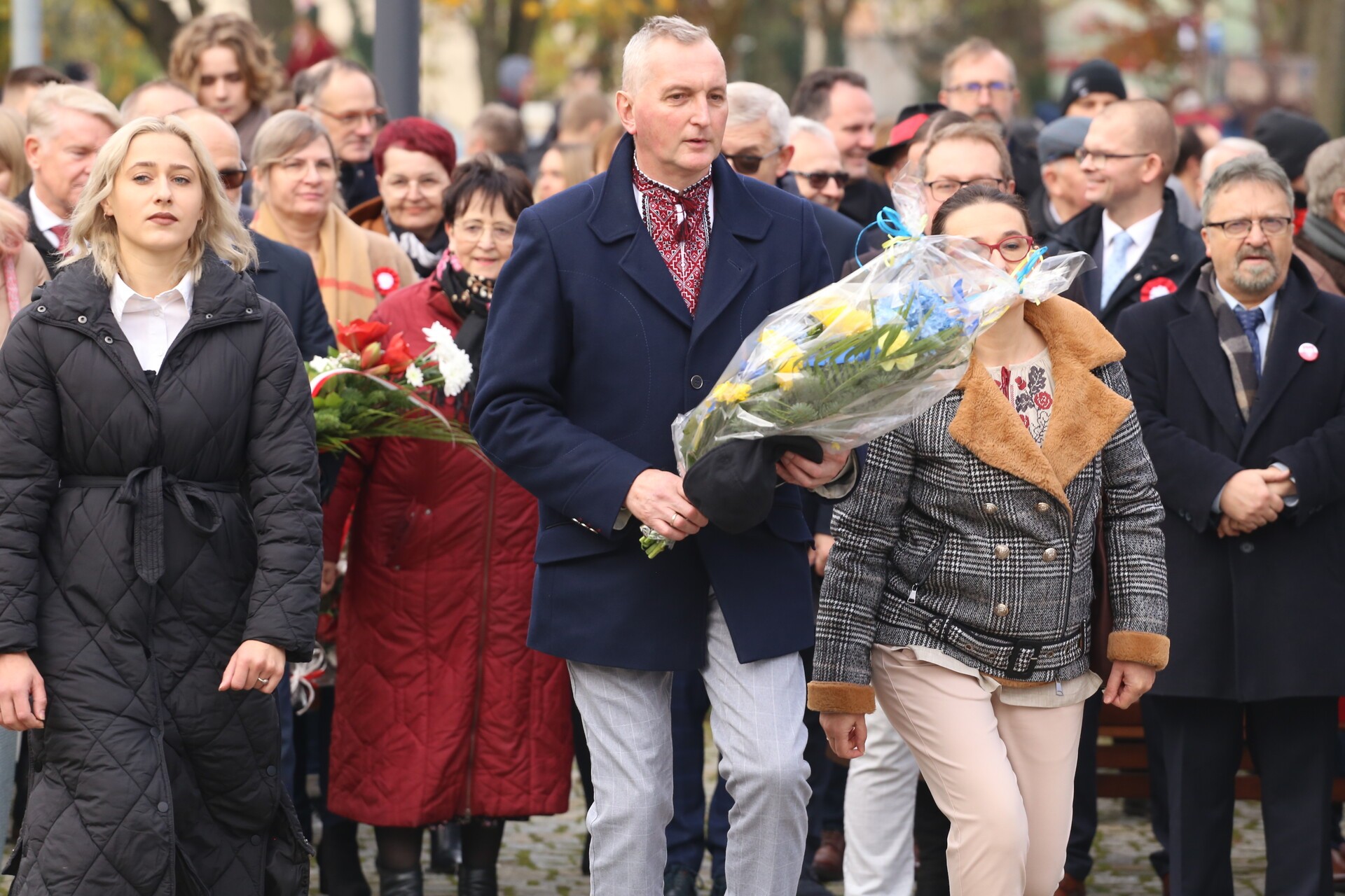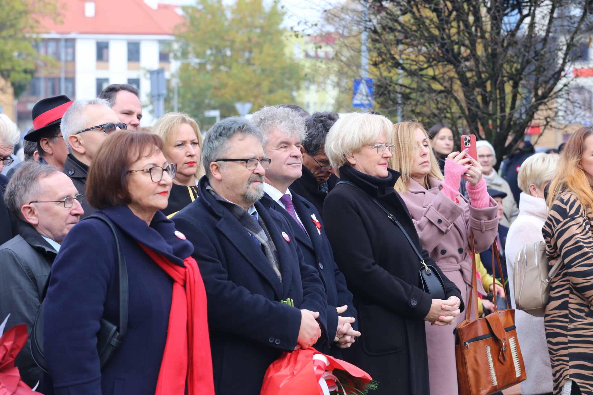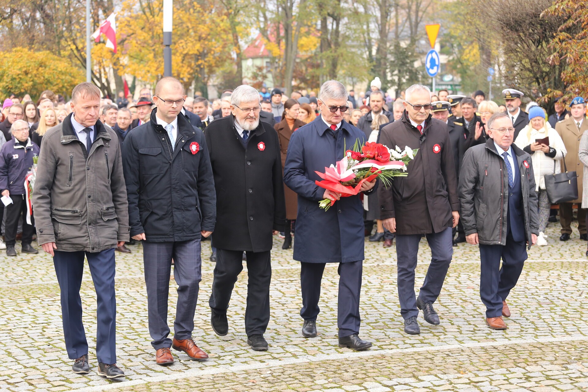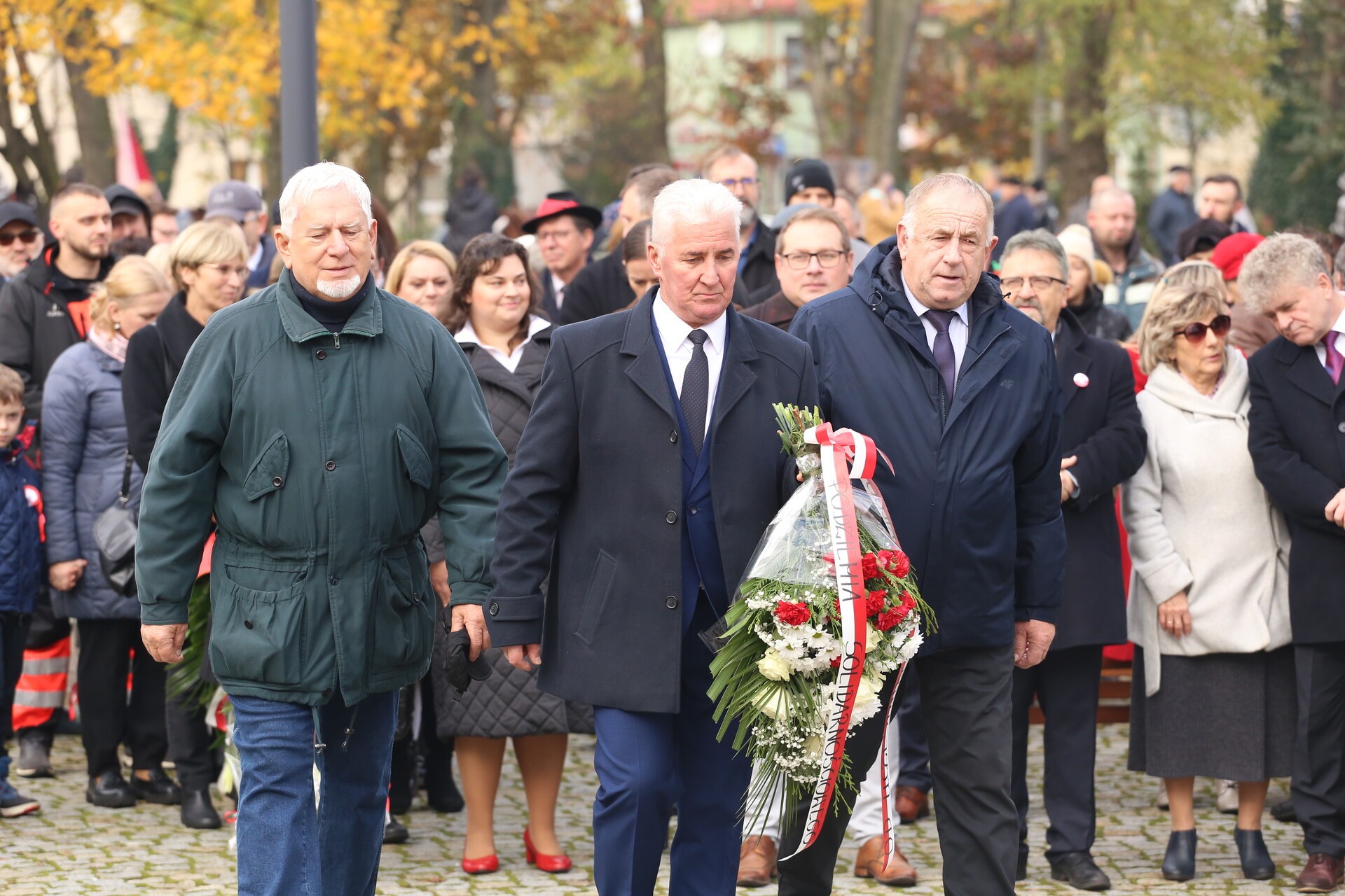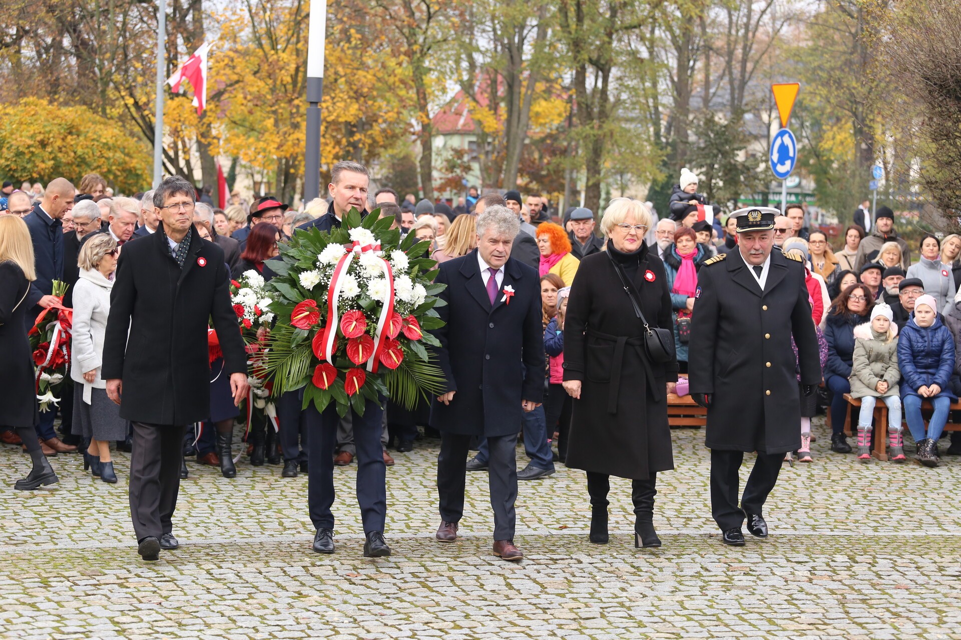 Na Skwerze Orła Białego pod Obeliskiem Niepodległości burmistrz Witold Namyślak wygłosił okolicznościowe przemówienie dotyczące niełatwych dróg do odzyskania niepodległości po 123-letnim okresie zaborów, kończąc je okrzykiem: „Niech żyje Niepodległa! Niech żyje niepodległa Rzeczpospolita Polska!”. W części artystycznej wystąpiły wokalistki ze Szkoły Wokalu Anny Krawczykowskiej z wiązanką okolicznościowych utworów.