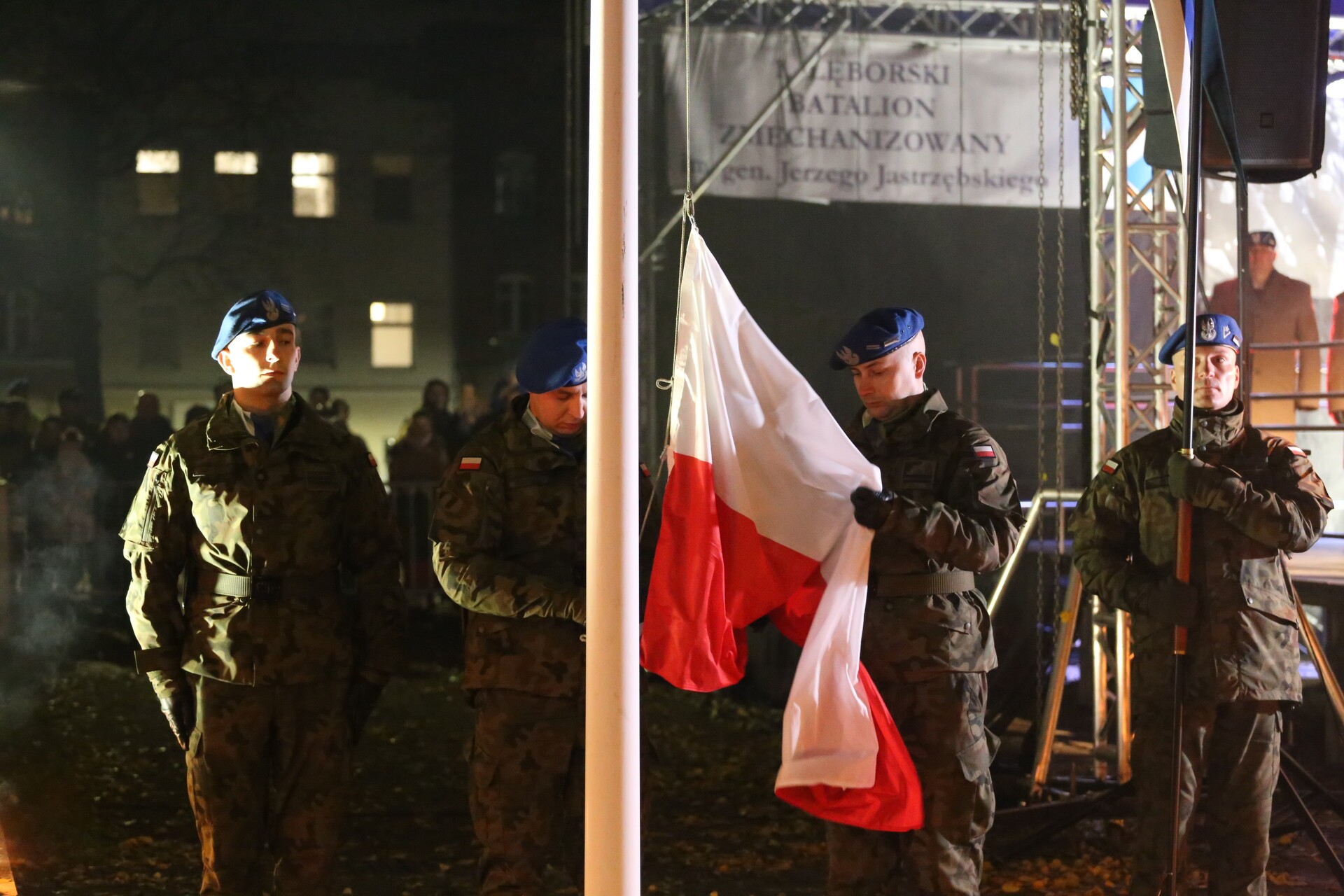 Wieczorem żołnierze z 1. lęborskiego batalionu zmechanizowanego im. gen. Jerzego Jastrzębskiego zorganizowali przemarsz z orkiestrą i pochodniami z koszar na plac Pokoju gdzie odbył się uroczysty Apel.