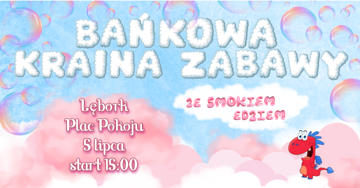 Już w sobotę, 5 lipca 2025 r., plac Pokoju w Lęborku zamieni się w prawdziwe centrum rodzinnej rozrywki. Przed nami wyjątkowe popołudnie pełne emocji, kolorów, muzyki i niezapomnianych wrażeń. Na mieszkańców i gości czekają aż trzy niezwykłe wydarzenia - Bańkowa Kraina Zabawy ze Smokiem Edziem, Festiwal Dinozaurów oraz Holi Day – święto kolorów. Wstęp na wszystkie atrakcje jest bezpłatny!
