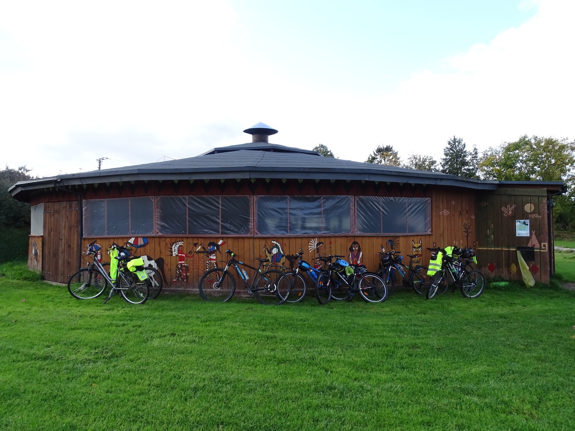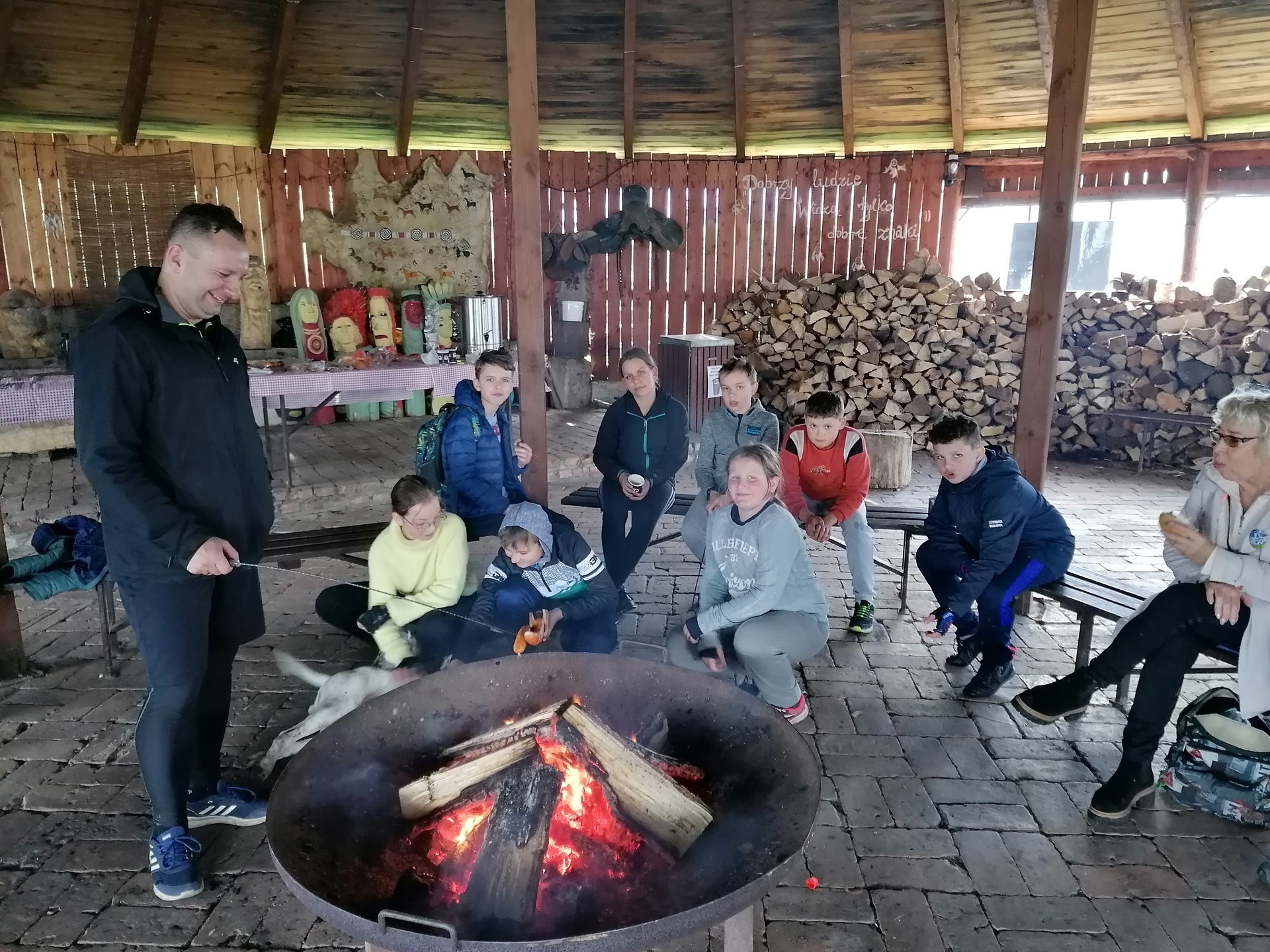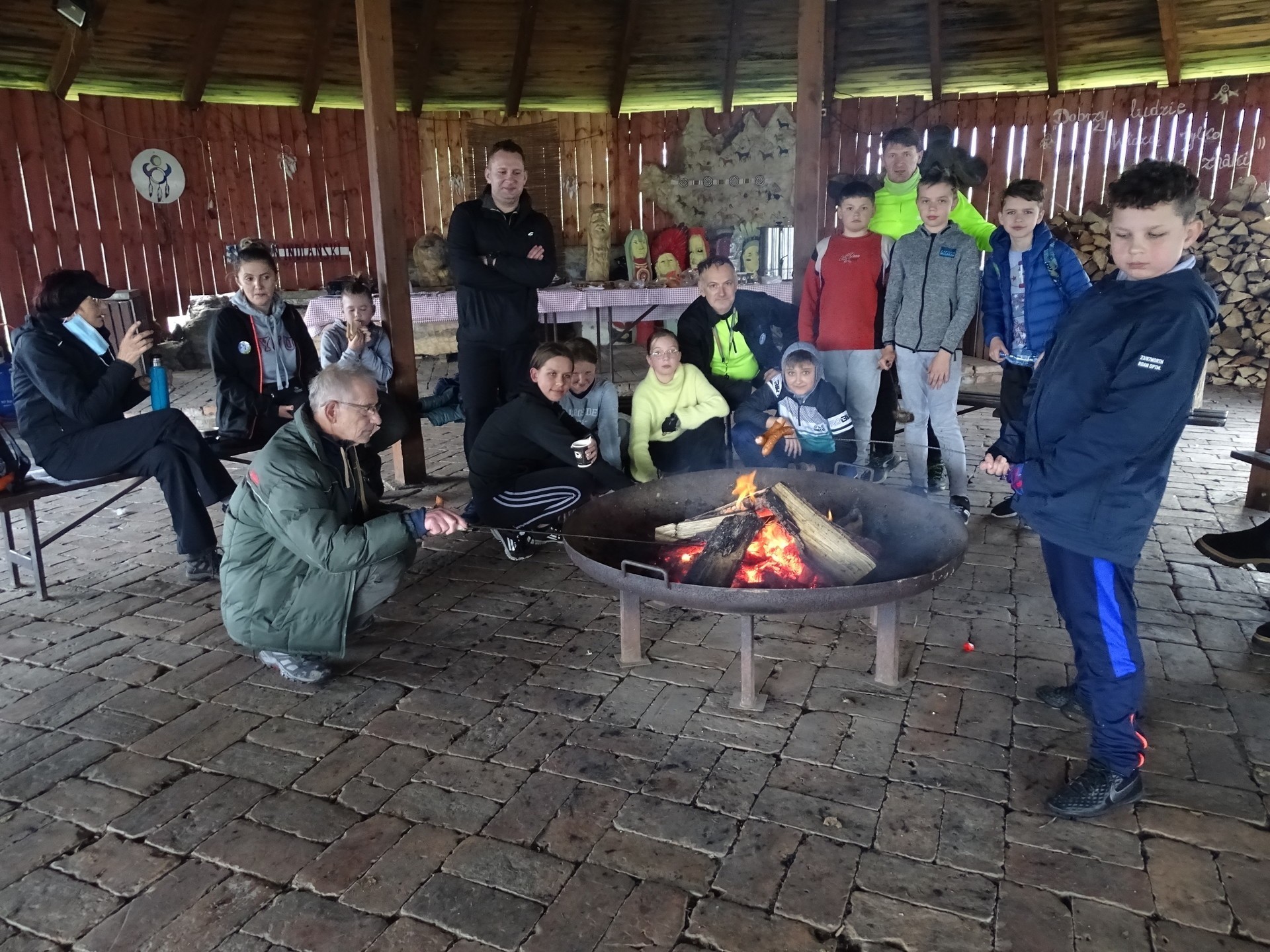 Uczestnicy rajdu spotkali się na gościnnym terenie "Pałacu pod Bocianim Gniazdem" w Runowie, gdzie organizatorzy przygotowali posiłek regeneracyjny w postaci pieczonej kiełbaski.