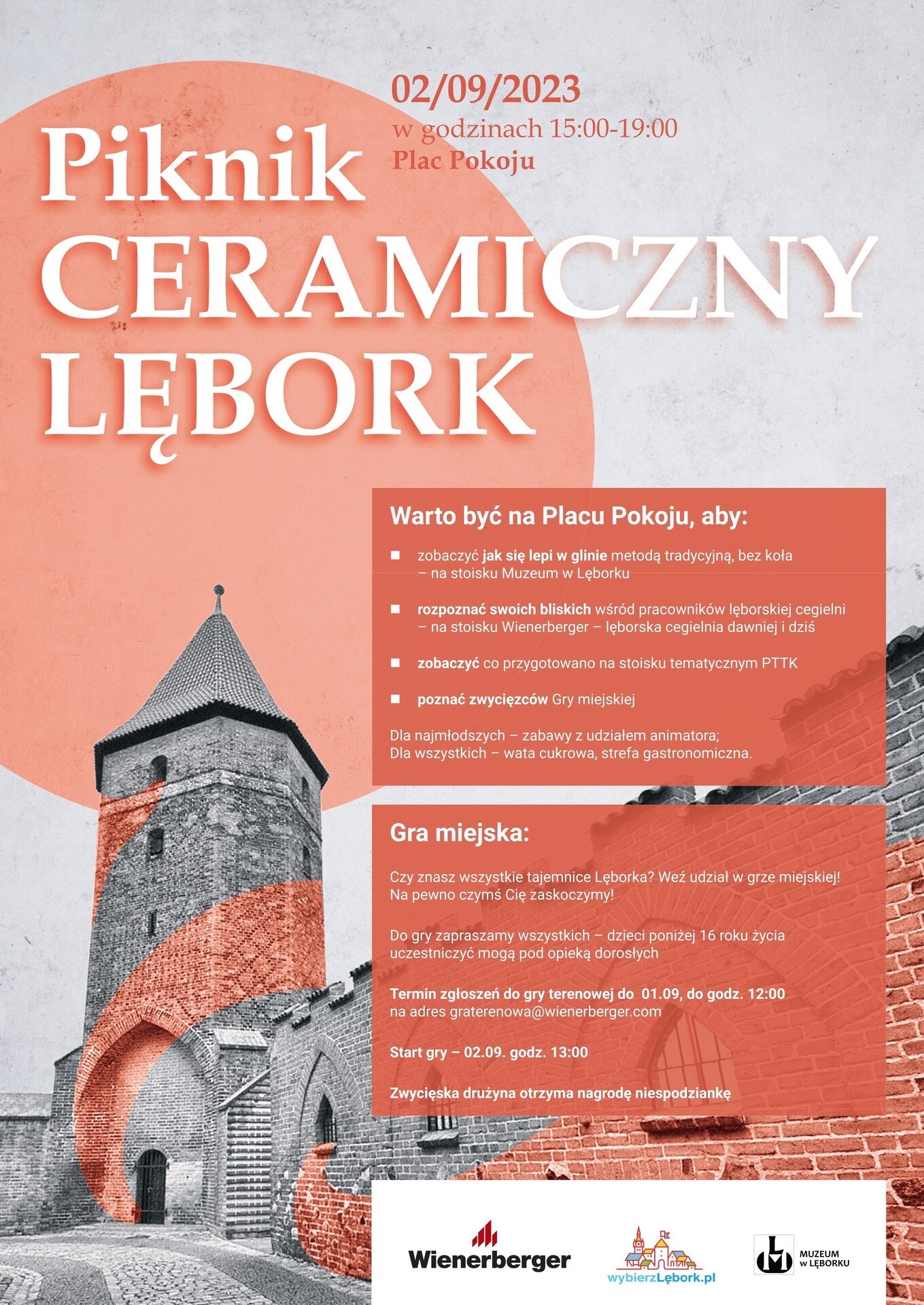 Mamy zaszczyt zaprosić wszystkich mieszkańców Lęborka oraz okolic na piknik rodzinny "Ceramiczny Lębork". Wydarzenie będzie miało miejsce 2 września 2023 roku na Placu Pokoju w Lęborku w godzinach od 15:00 do 19:00.
