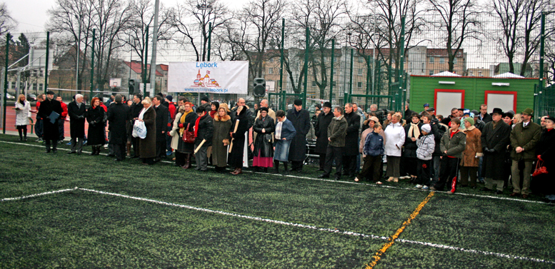 Otwarcie inwestycji Moje Boisko - Orlik 2012 na Placu Piastowskim miało bardzo uroczystą oprawę. Wśród gości honorowych, których powitali Burmistrz Włodzimierz Klata i Sekretarz Miasta Marian Kurzydło byli: Wiceminister Sportu Adam Giersz, Wojewoda Pomorski Roman Zaborowski, Marszałek Województwa Pomorskiego Jan Kozłowski oraz Poseł Witold Namyślak. Nie zabrakło samorządowców, wójtów oraz władz Powiatu Lęborskiego, a także dyrektorów szkół i przedstawicieli placówek oświatowo-wychowawczych, instytucji lęborskich, stowarzyszeń sportowych oraz firm realizujących inwestycję.