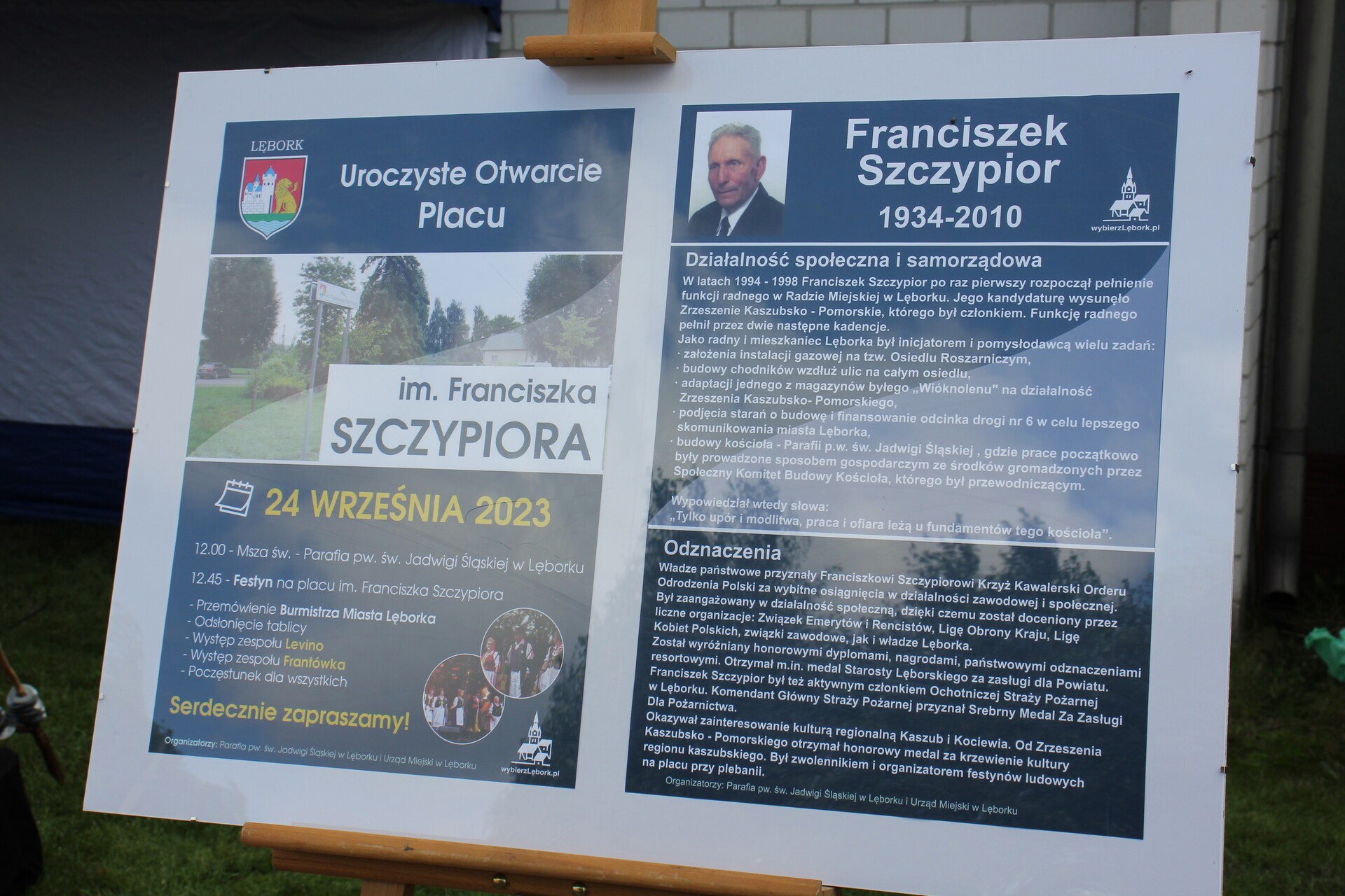 W niedzielę 24 września 2023 r. na Osiedlu Roszarniczym uroczyście otwarto plac im. Franciszka Szczypiora. Historyczne dla dzielnicy wydarzenie odbyło się z udziałem m.in. burmistrza Lęborka Witolda Namyślaka, proboszcza parafii św. Jadwigi Śląskiej ks. Sławomira Prabuckiego, rodziny Franciszka Szczypiora, radnych i mieszkańców. Symboliczne odsłonięcie tablicy z nazwą placu poprzedziła msza św.