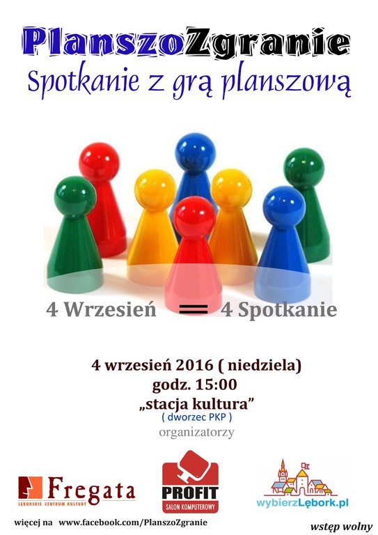 4 września 2016 o godz. 15 w Stacji Kultura (dworzec PKP) kolejne spotkanie z grami planszowymi pn. "PlanszoZgranie". Tym razem będzie możliwość zagrania w grę "Królestwo w Budowie" której to mistrzostwa odbędą się w Lęborku w październiku. Wstęp wolny. Więcej informacji na www.facebook.com/planszozgranie