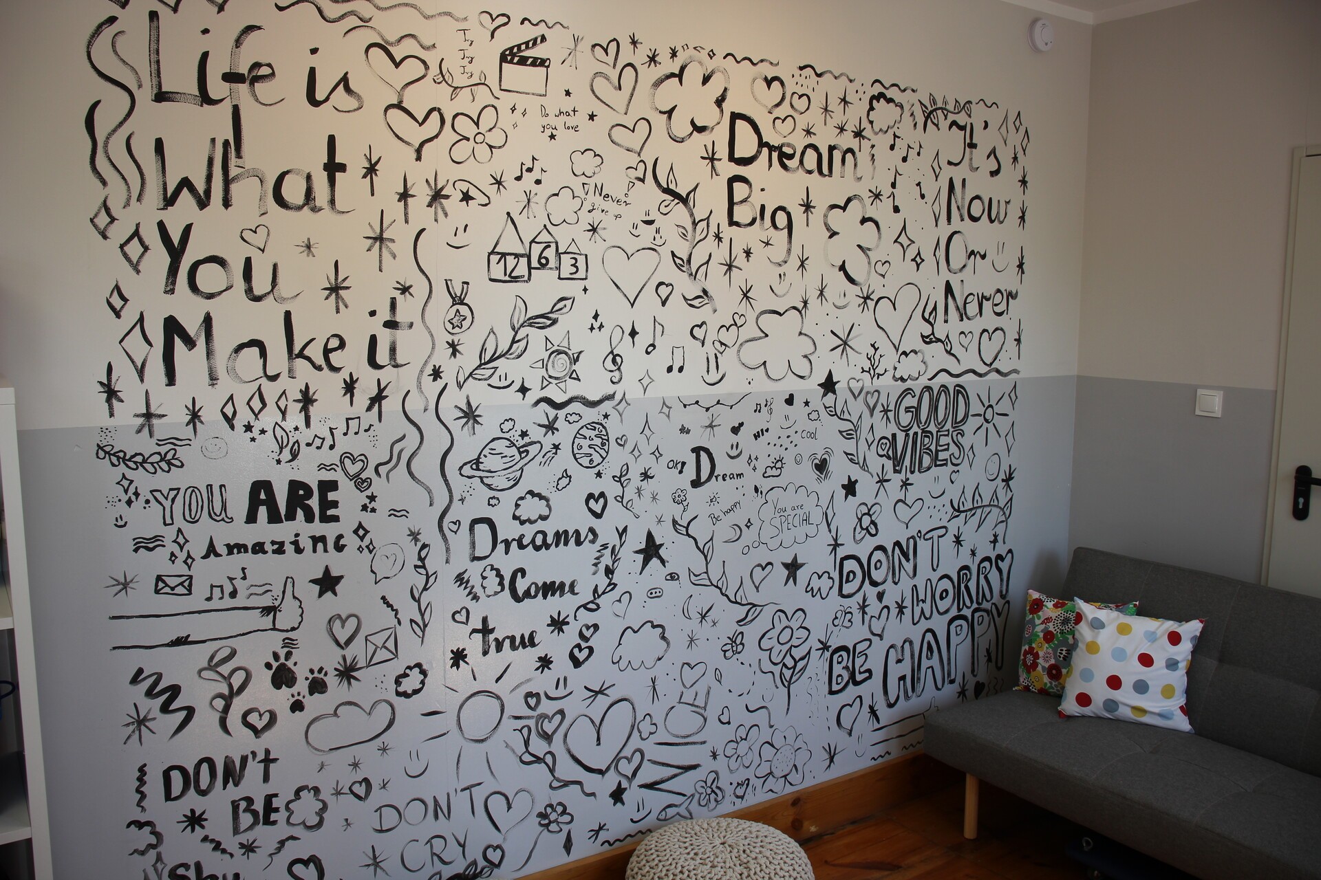 Nowa sala ma służyć całej społeczności szkolnej. Odbywać się w niej będą zajęcia pozalekcyjne, socjoterapeutyczne, psychologiczne, SI oraz różnego rodzaju spotkania, na przykład Samorządu Szkolnego. Podłużne pomieszczenie podzielone jest na strefę pracy i relaksu. Ściany ozdobili sami uczniowie.