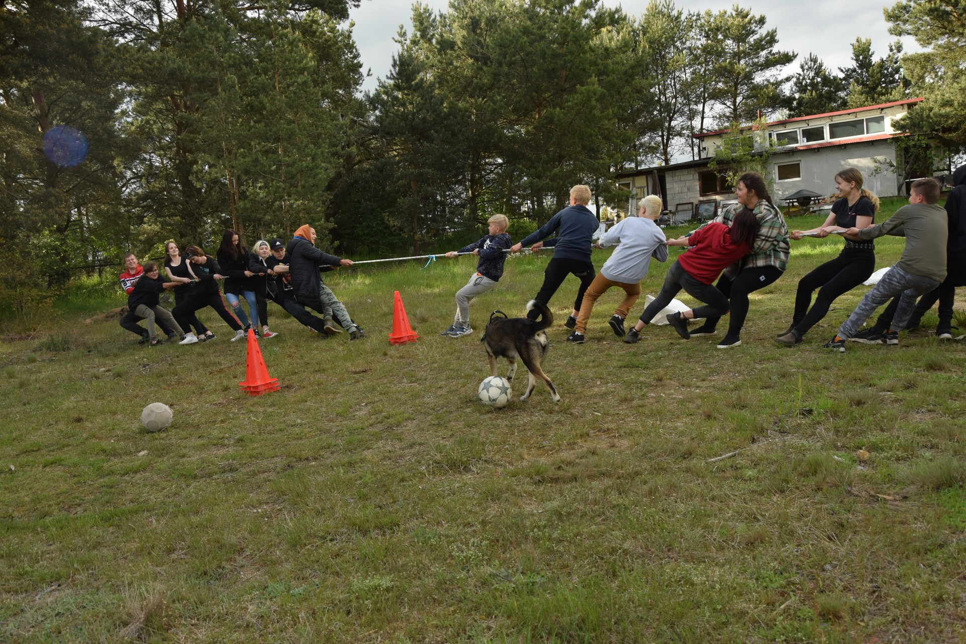 Dnia 29 maja 2021 roku (sobota) odbyły się podchody dla uczestników projektu Ożywiony Lębork NOWY Świat – usługi społeczne dla mieszkańców obszaru rewitalizacji. O godzinie 12 uczestnicy podzieleni na trzy grupy wyruszyli z punktów startowych zaznaczonych na mapie w kierunku Lubowidza. Po drodze uczestnicy musieli znaleźć punkty oznaczone na mapach, skontaktować się z uczestniczką, która współorganizowała podchody i wykonać zadanie, po udzieleniu poprawnych odpowiedzi uczestnicy mogli iść dalej. Finałowy punkt znajdował się przy „Stajni Lubowidz”. Tam na młodzież czekało wiele atrakcji. Dzięki uprzejmości właściciela stajni młodzież mogła skorzystać z miejsca ogniskowego i w miłej atmosferze posilić się kiełbaskami a także skorzystać z przejażdżki konnej, co było miła niespodzianką dla uczestników i cudownym doświadczeniem. Jedna z uczestniczek projektu, miłośniczka koni i aspirująca na instruktora jeździectwa instruowała koleżanki i kolegów jak zachowywać się przy koniu, jak czyścić i ubierać konia do jazdy. Oprócz tego na młodzież czekała fotobudka, która została sprezentowana przez lokalną firmę. Odbyły się również obowiązkowe tańce przy ognisku, zawody w przeciąganiu liny i inne aktywności fizyczne. To był czas na pogawędki pomiędzy uczestnikami, integrację no i świetną zabawę ! O godzinie 20 zmęczona, ale szczęśliwa młodzież udała się do swoich domów.