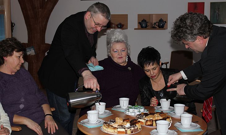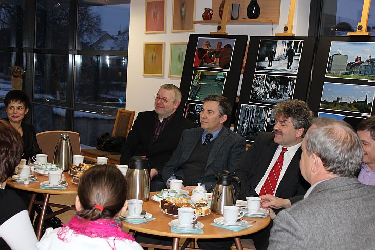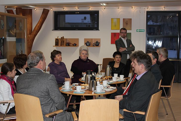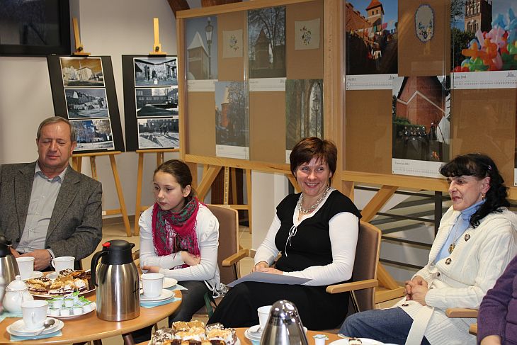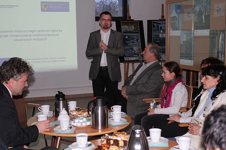 Zaproszeni goście przy kawie i słodkim poczęstunku obejrzeli film o lęborskich obwarowaniach.