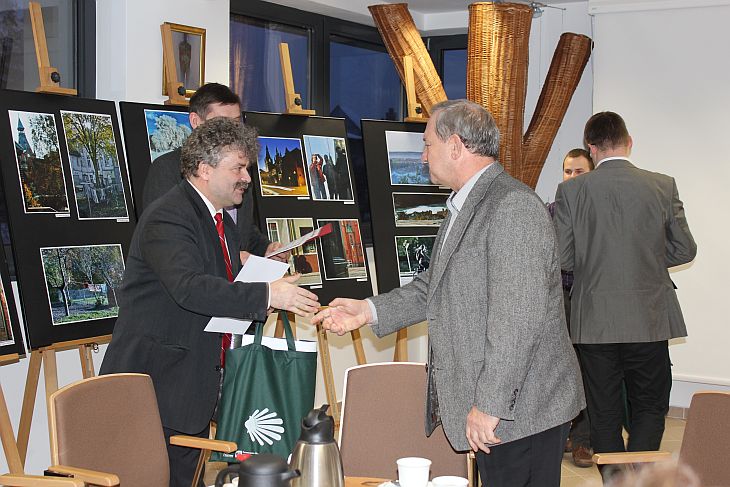 Burmistrz Witold Namyślak wraz Przewodniczącym Rady Miejskiej Adamem Stenką, dyrektorem LCK „Fregata" Pawłem Piwką i prezesem Stowarzyszenia „Piękna Ziemia Lęborska" Mirosławem Rybickim wręczyli dyplomy wraz z podziękowaniami za wieloletnie zaangażowanie w "świąteczne rozświetlanie miasta".