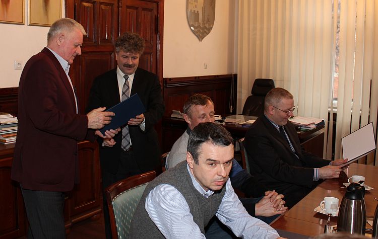 13 marca br. odbyło się w ratuszu spotkanie burmistrza Witolda Namyślaka z ustępującym i nowym Zarządem Lęborskiego Klubu Sportowego Pogoń. Burmistrz podziękował byłym członkom Zarządu za wieloletnią pracę na rzecz klubu i lęborskiego sportu, a nowo wybranym władzom klubu życzył powodzenia i sportowych sukcesów.