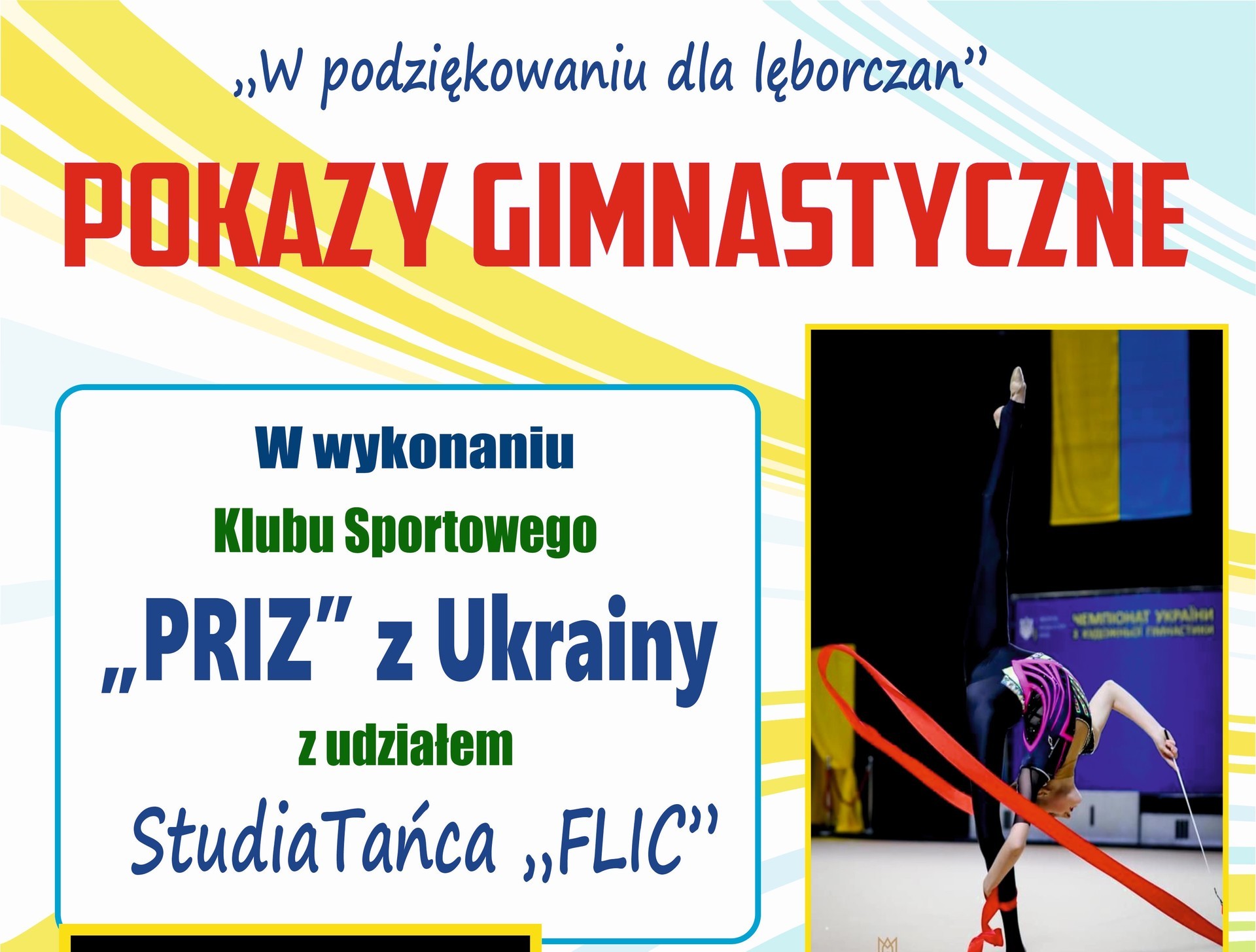 Dziecięcy Klub Sportowy Gimnastyki Artystycznej "PRIZ" z Ukrainy z działem Studia Tańca "FLIC" zaprezentują projekt sportowy "W podziękowaniu dla lęborczan".