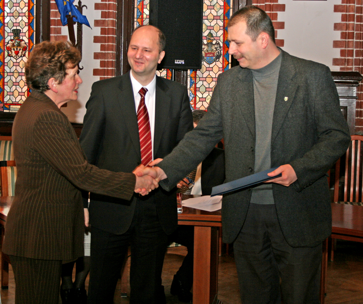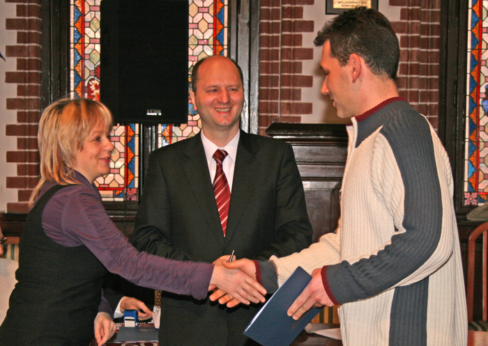 W dniu 13 stycznia br. Burmistrz Miasta Włodzimierz Klata wraz z Przewodniczacą Rady Miejskiej Wandą Konieczną wręczyli przedstawicielom klubów i stowarzyszeń umowy na realizację powyższych zadań na łączną kwotę 516.400 zł.