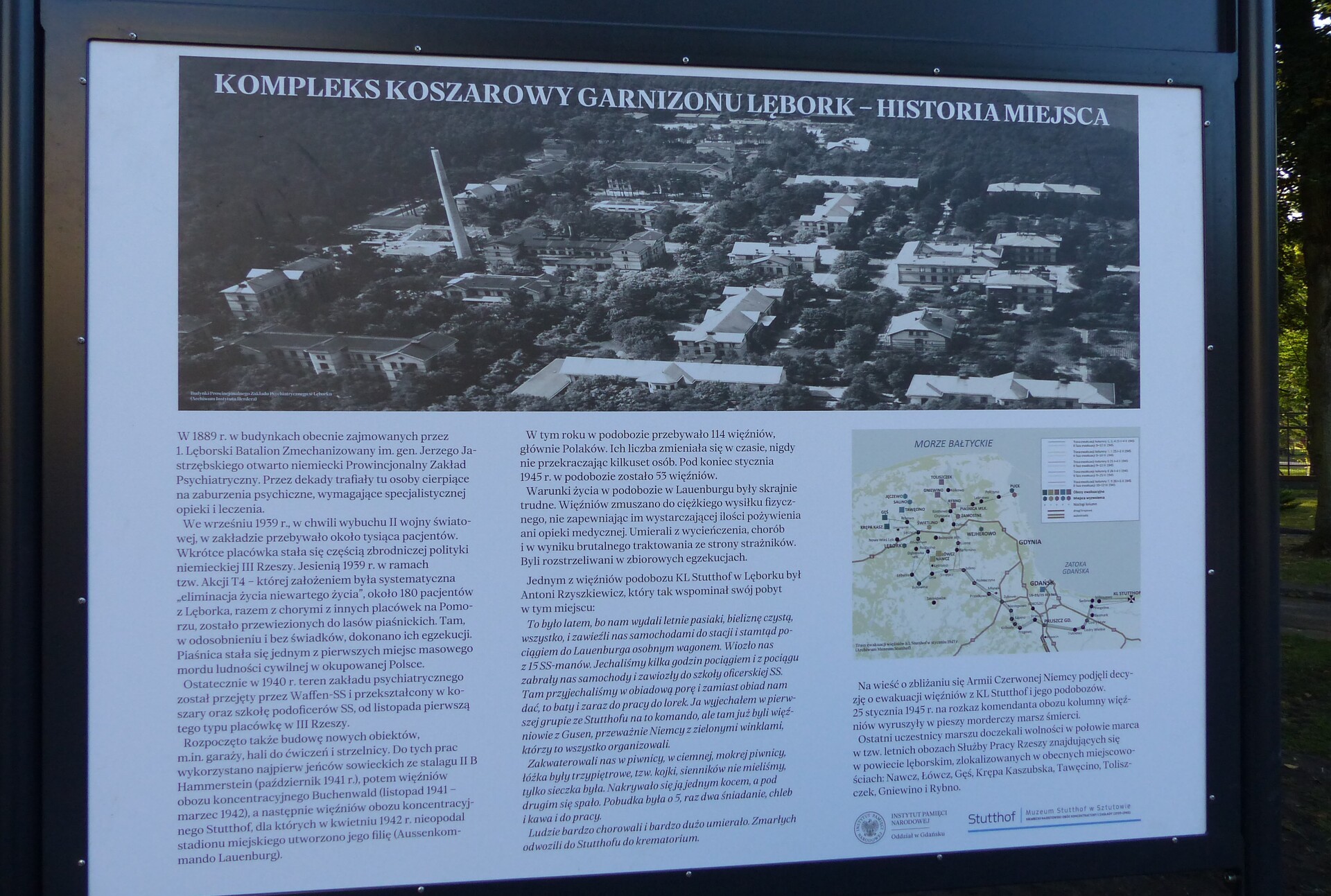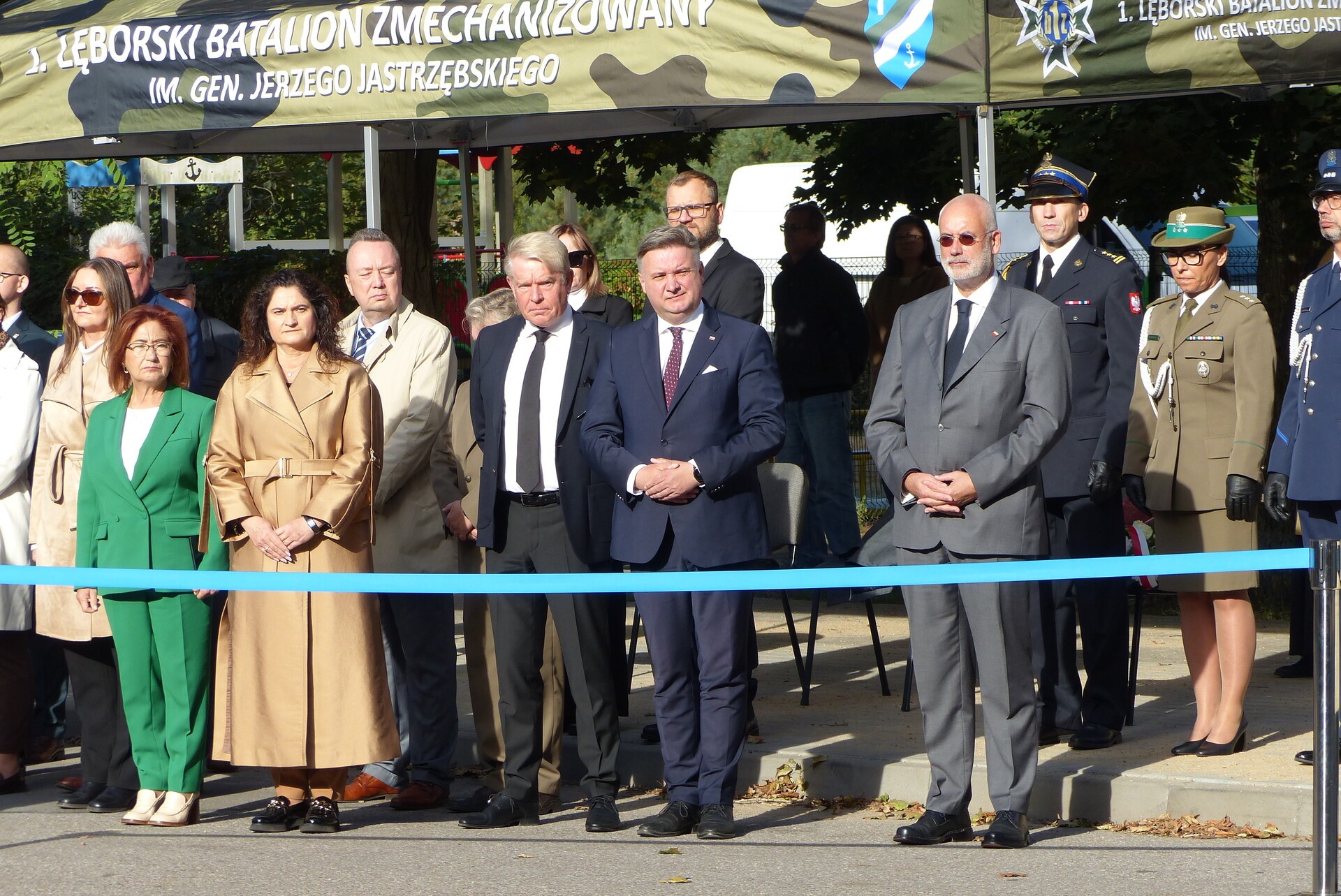 W niedzielę 28 września 2025 r. przy ul. Obrońców Wybrzeża, tuż obok bramy jednostki wojskowej 1. lęborskiego batalionu zmechanizowanego im. gen. Jerzego Jastrzębskiego, odbyła się wyjątkowa uroczystość odsłonięcia pomnika i tablic upamiętniających polskie ofiary niemieckiego terroru podczas II wojny światowej – więźniów podobozu Lauenburg, filii niemieckiego obozu koncentracyjnego i zagłady Stutthof.