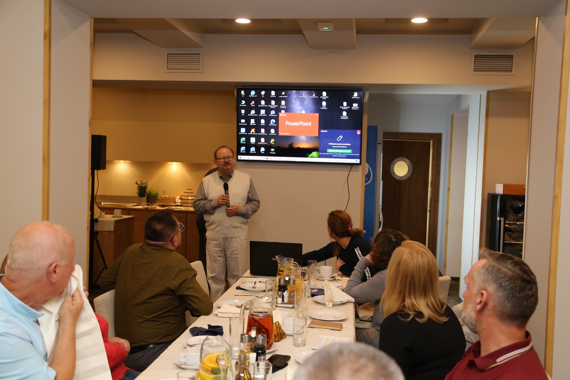 Uczestnicy warsztatów wysłuchali wystąpienia zaangażowanego w projekt prof. Przemysława Kulawczuka z Uniwersytetu Gdańskiego na temat kreowania produktów turystycznych, obejrzeli także film dokumentalny pt. „Wierzenia i religie na obszarze Południowego Bałtyku”. To zapis ubiegłorocznej wędrówki grupy zaangażowanej w realizację projektu, stanowiący praktyczny test opracowanego w ramach projektu szlaku, wiodącego po świętych miejscach północnej Polski i Litwy.