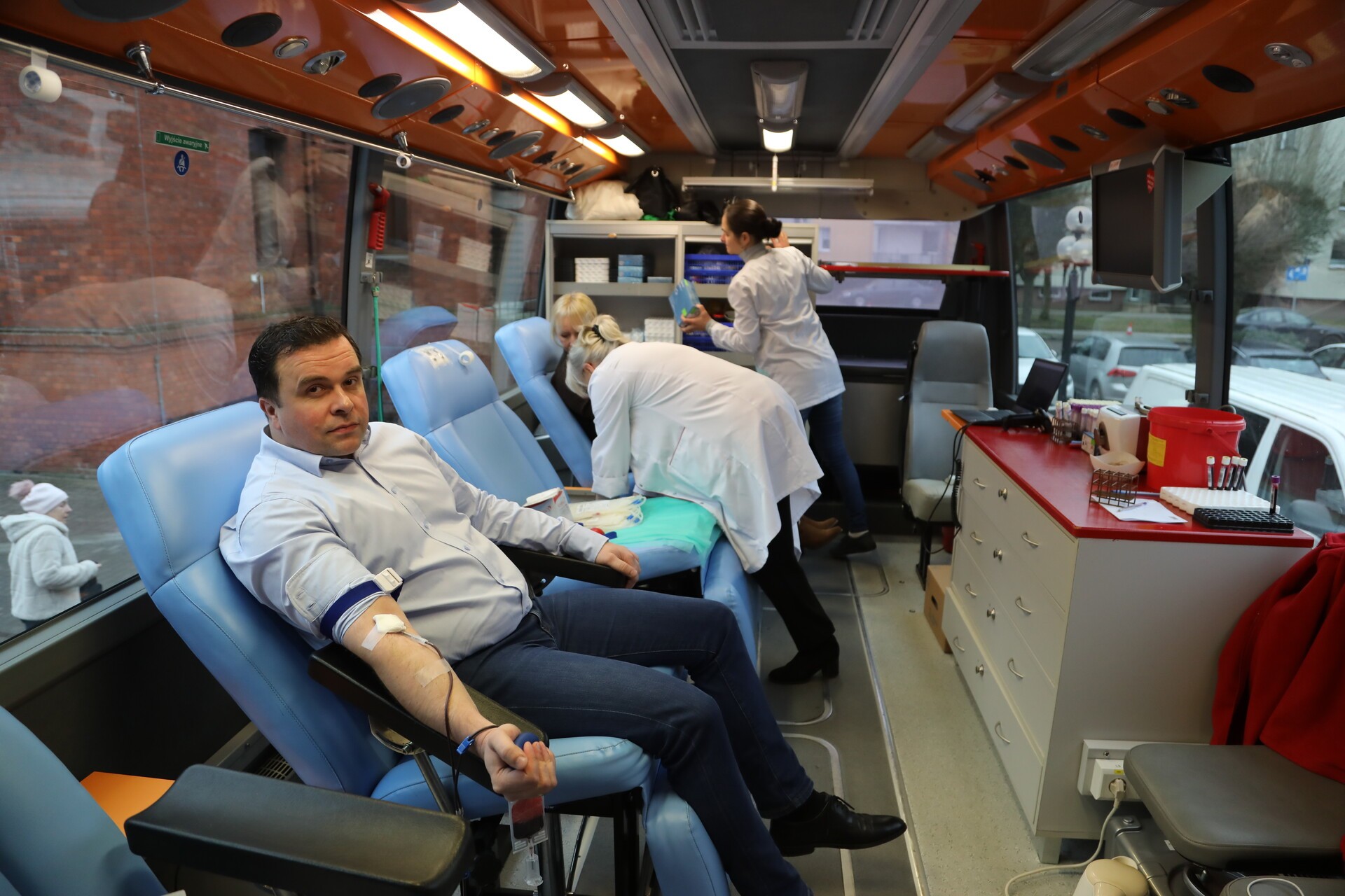 Pierwsza w historii akcja oddawania krwi w krwiobusie na parkingu Urzędu Miejskiego w Lęborku zorganizowana została przez Regionalne Centrum Krwiodawstwa i Krwiolecznictwa im. Jana Pawła II w Słupsku, Polski Czerwony Krzyż Oddział w Lęborku, Urząd Miejski w Lęborku i Powiatowy Klub Honorowych Dawców Krwi PCK.