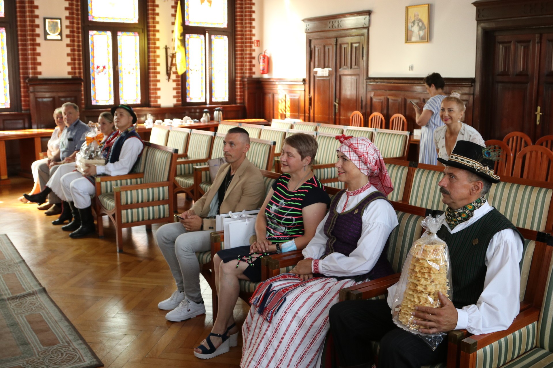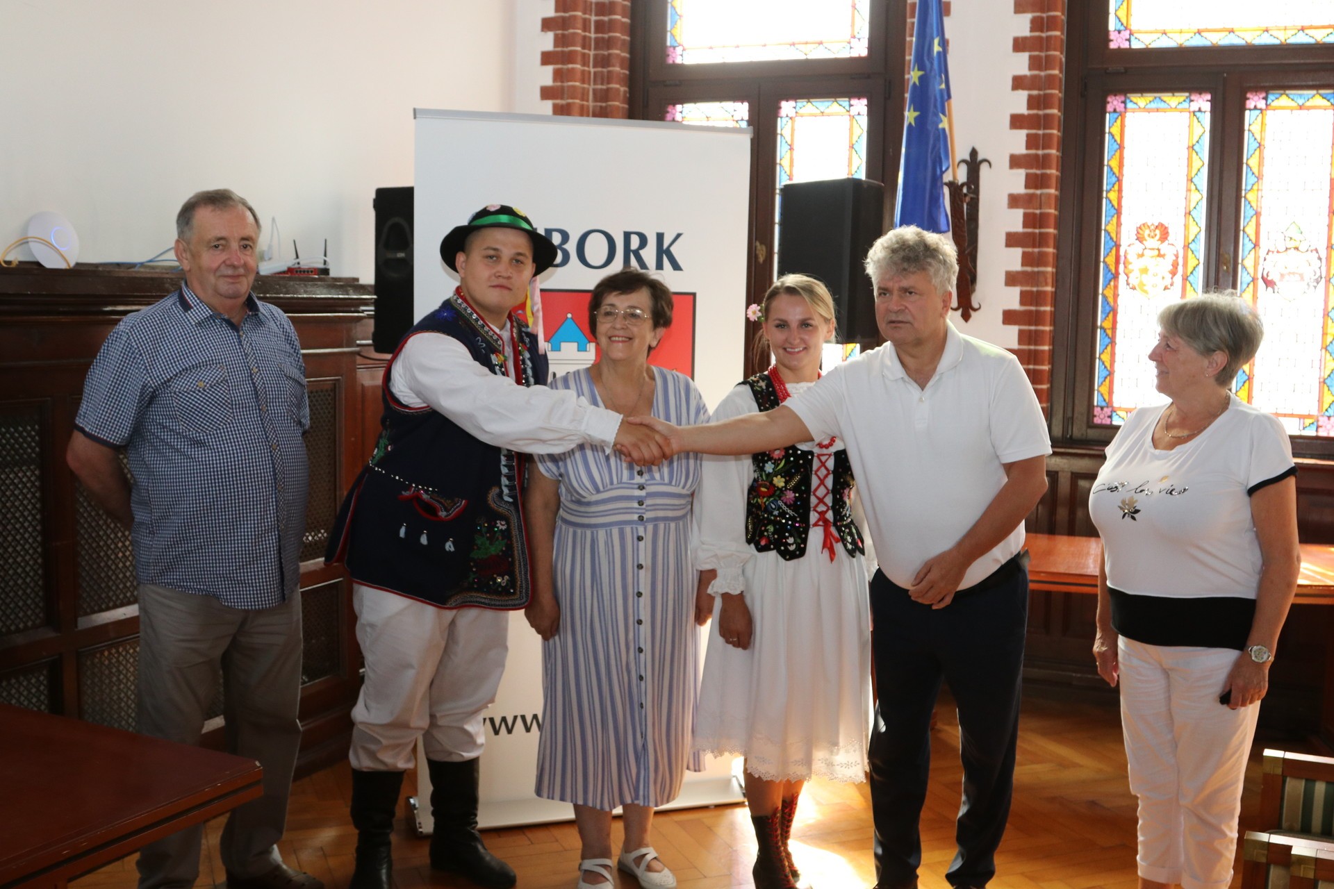 W lęborskim ratuszu w piątkowy poranek gościły trzy spośród zaproszonych na występy w Jarmarkowy weekend zespoły. Z Litwy przyjechały do Lęborka - zespół taneczny Salanta oraz wokalno-instrumentalny Strazdelis. Z Małopolski przyjechał do nas Zespół Regionalny Szczyrzyczanie.