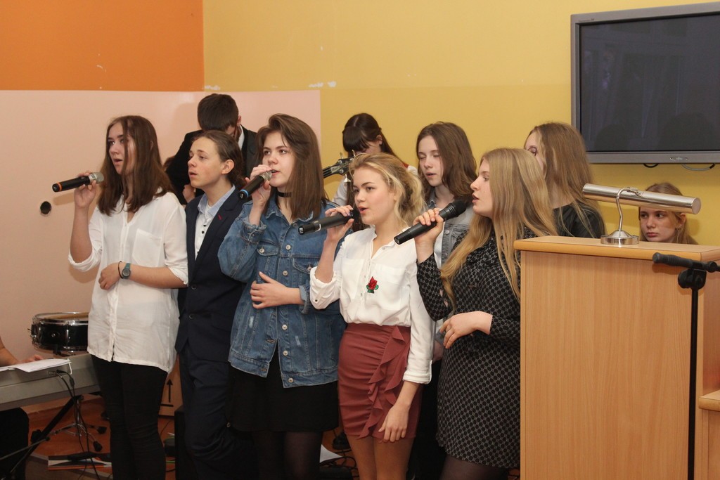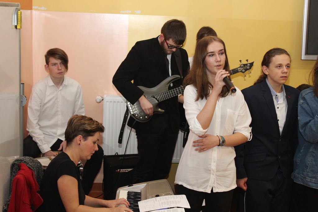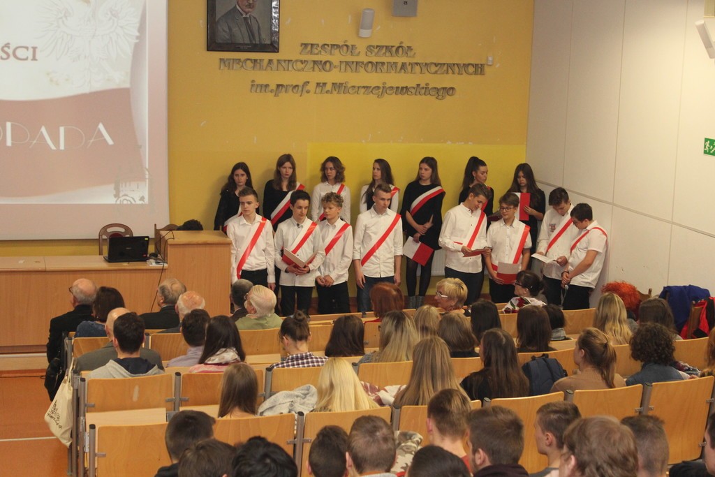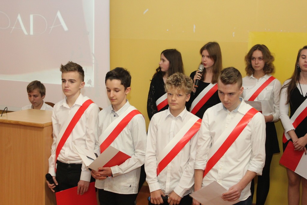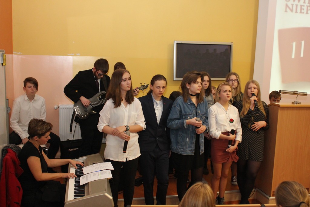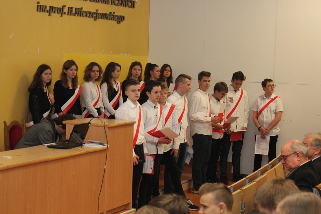 Wykład poprzedził patriotyczny występ – Chóru i uczniów Społecznego Gimnazjum Językowego w Lęborku.