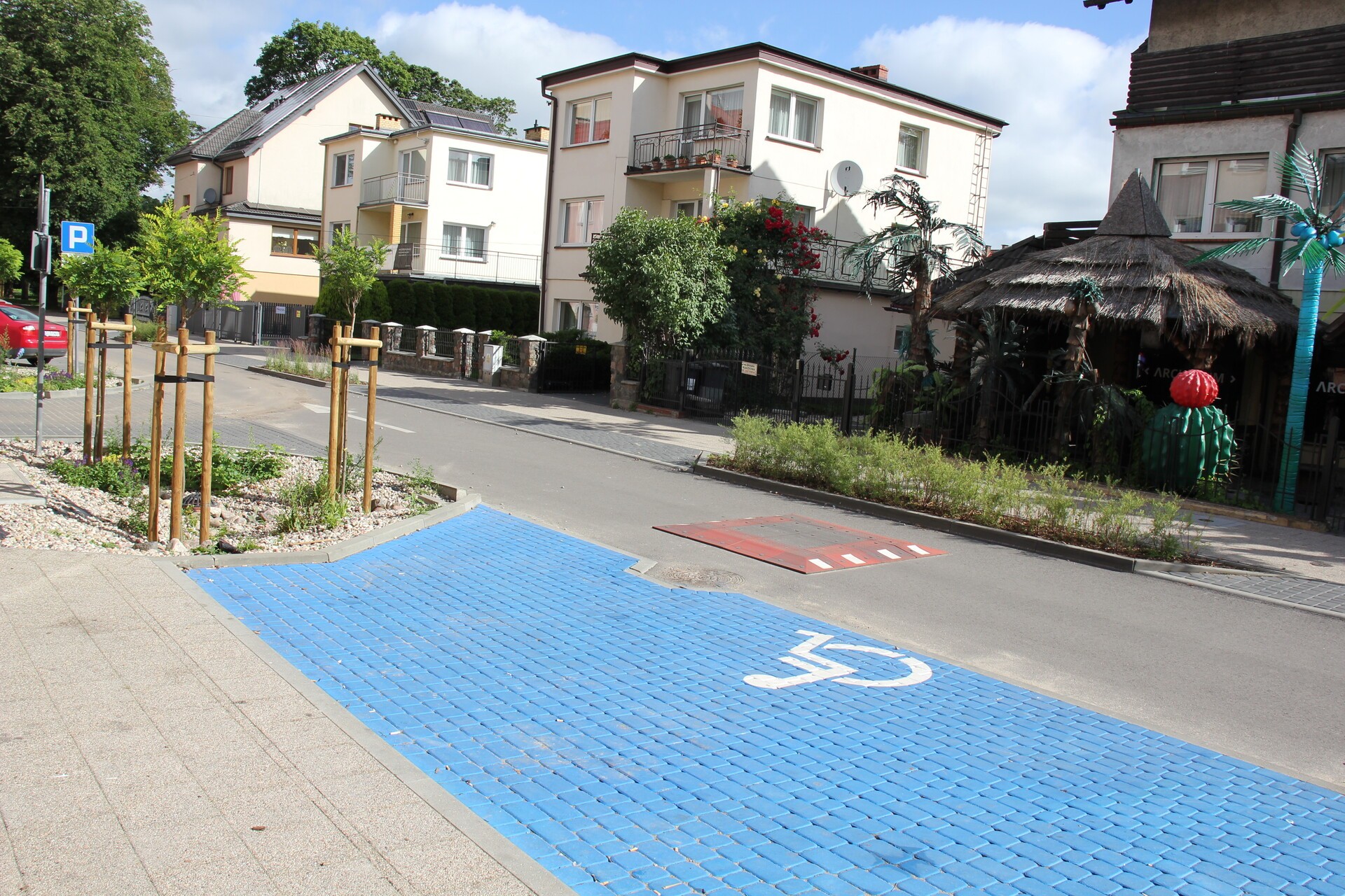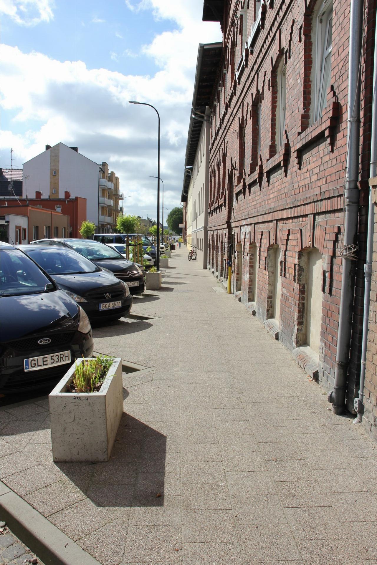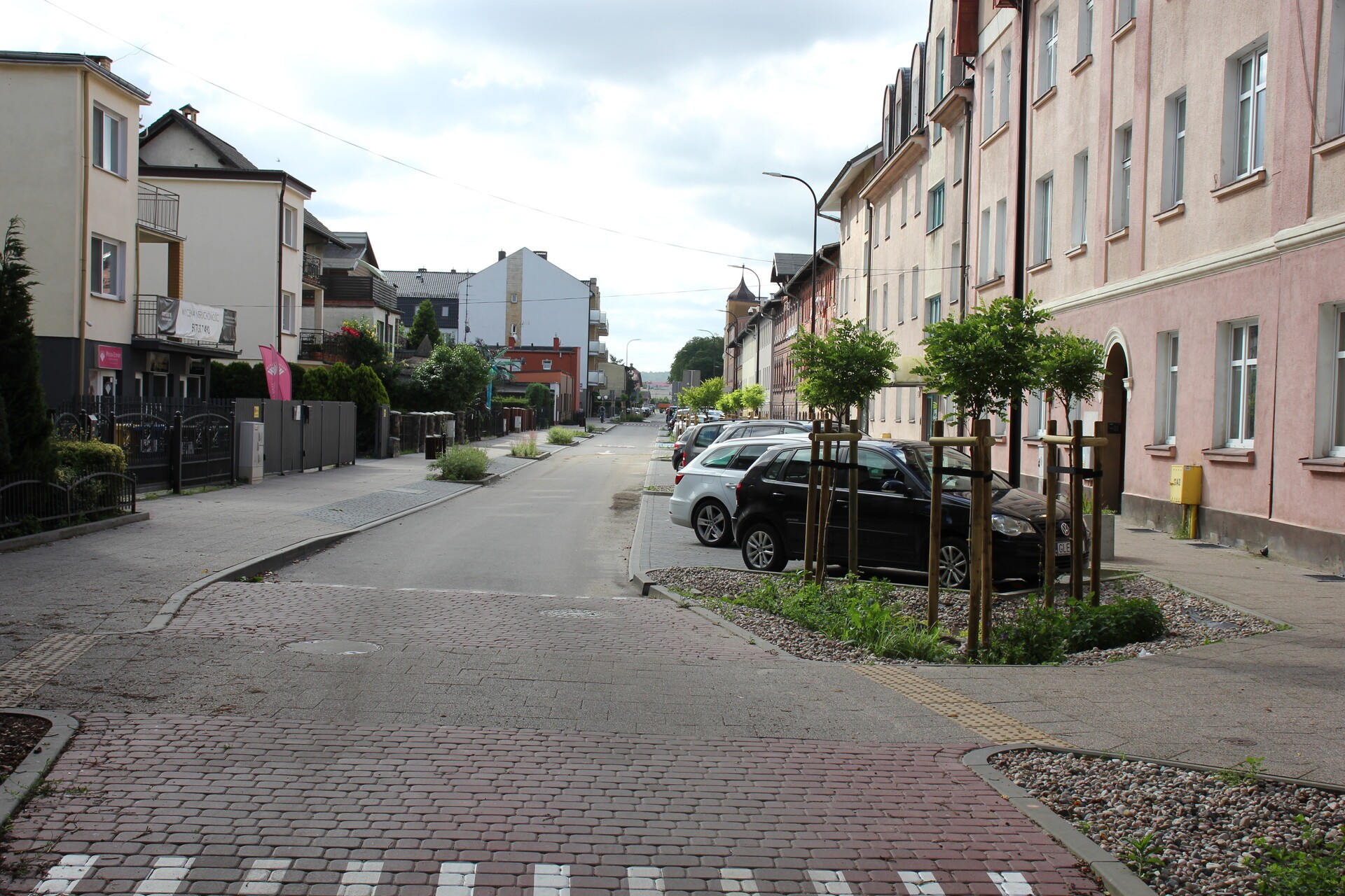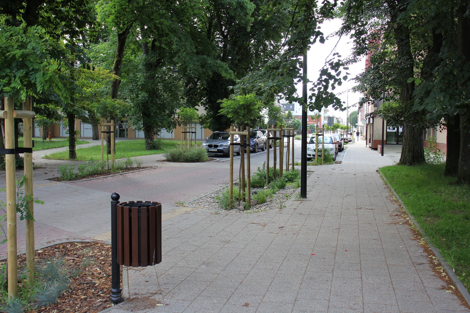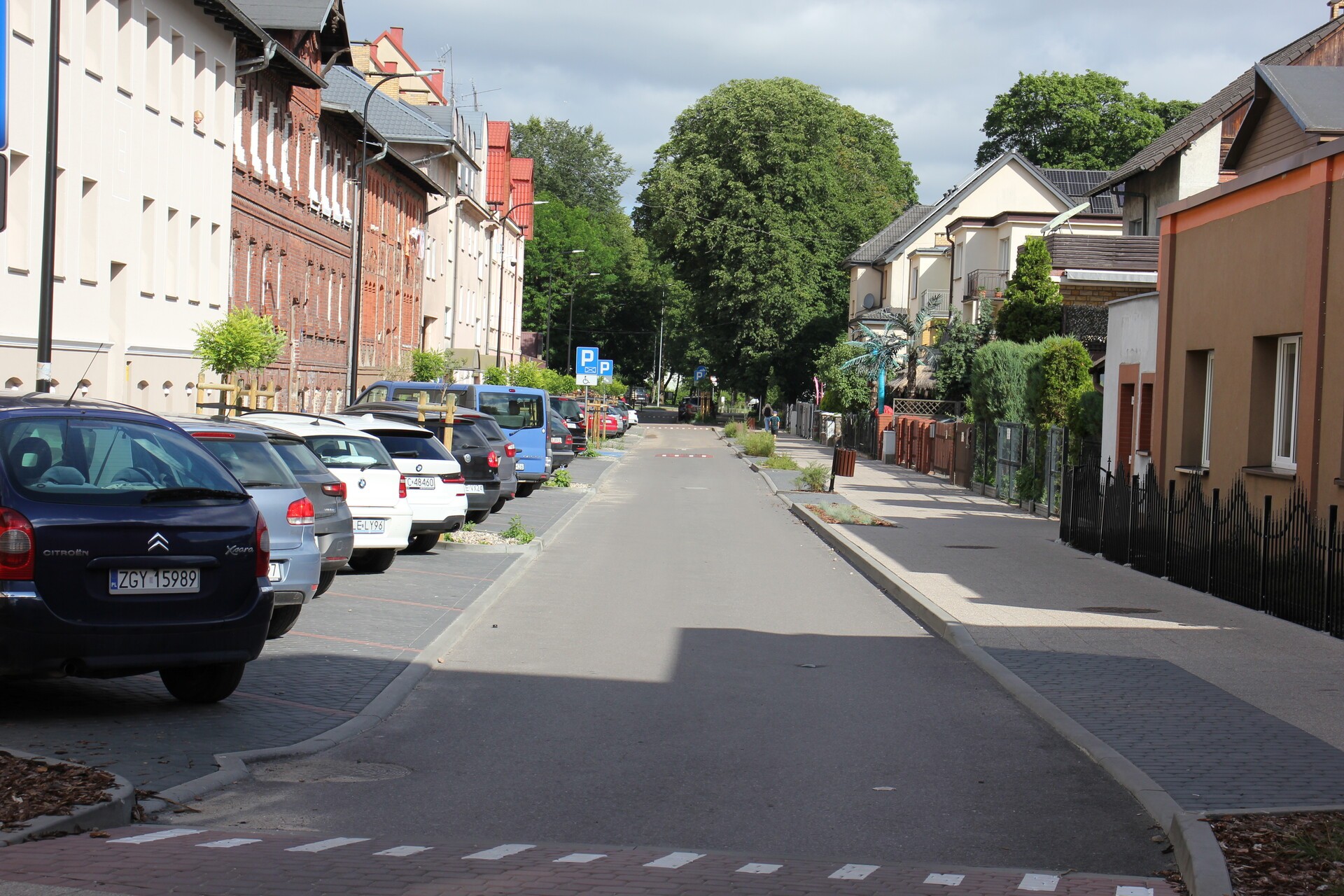 Kilka miesięcy wcześniej metamorfozę przeszła ulica Sienkiewicza od skrzyżowania z Grunwaldzką do Wojska Polskiego. Wybudowano przy niej 39 miejsc postojowych (w tym do parkowania na skos), nasadzono zieleń, postawiono ławki i nowe oświetlenie. W ramach prac drogowych udrożniono przejazd do ulicy Wojska Polskiego i wyznaczono ruch jednokierunkowy. W ramach inwestycji wybudowano także kanalizację deszczową. Wszystkie powyższe prace wykonała za kwotę 3.426.297 zł firma Krystiana Wenty - Usługi Leśne-Budowlane z Popowa.